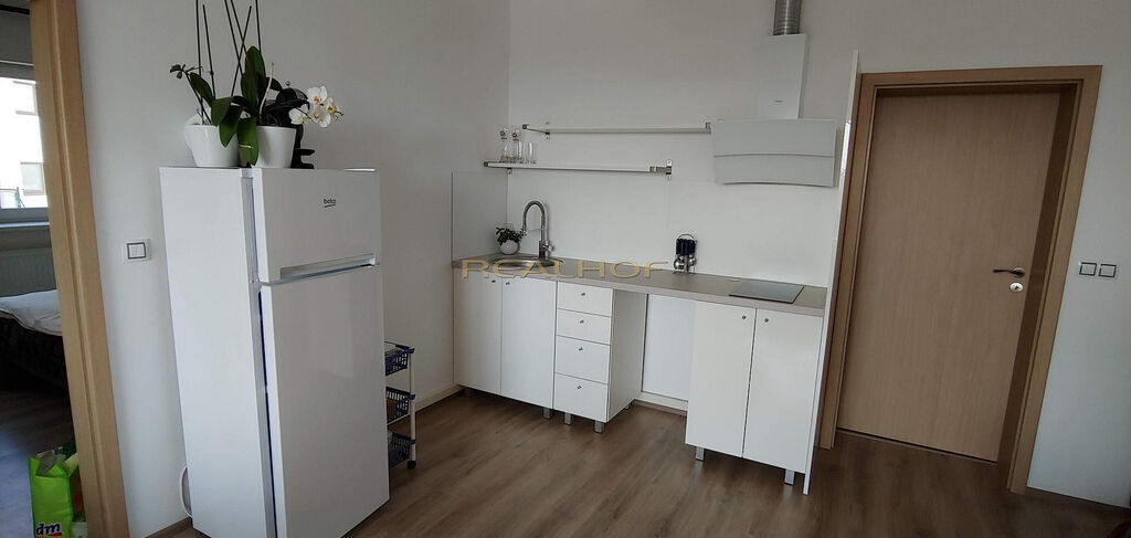 Kuchyňská linka je včetně spotřebičů - lednička s mrazákem, sklokeramická deska, odsavač par.