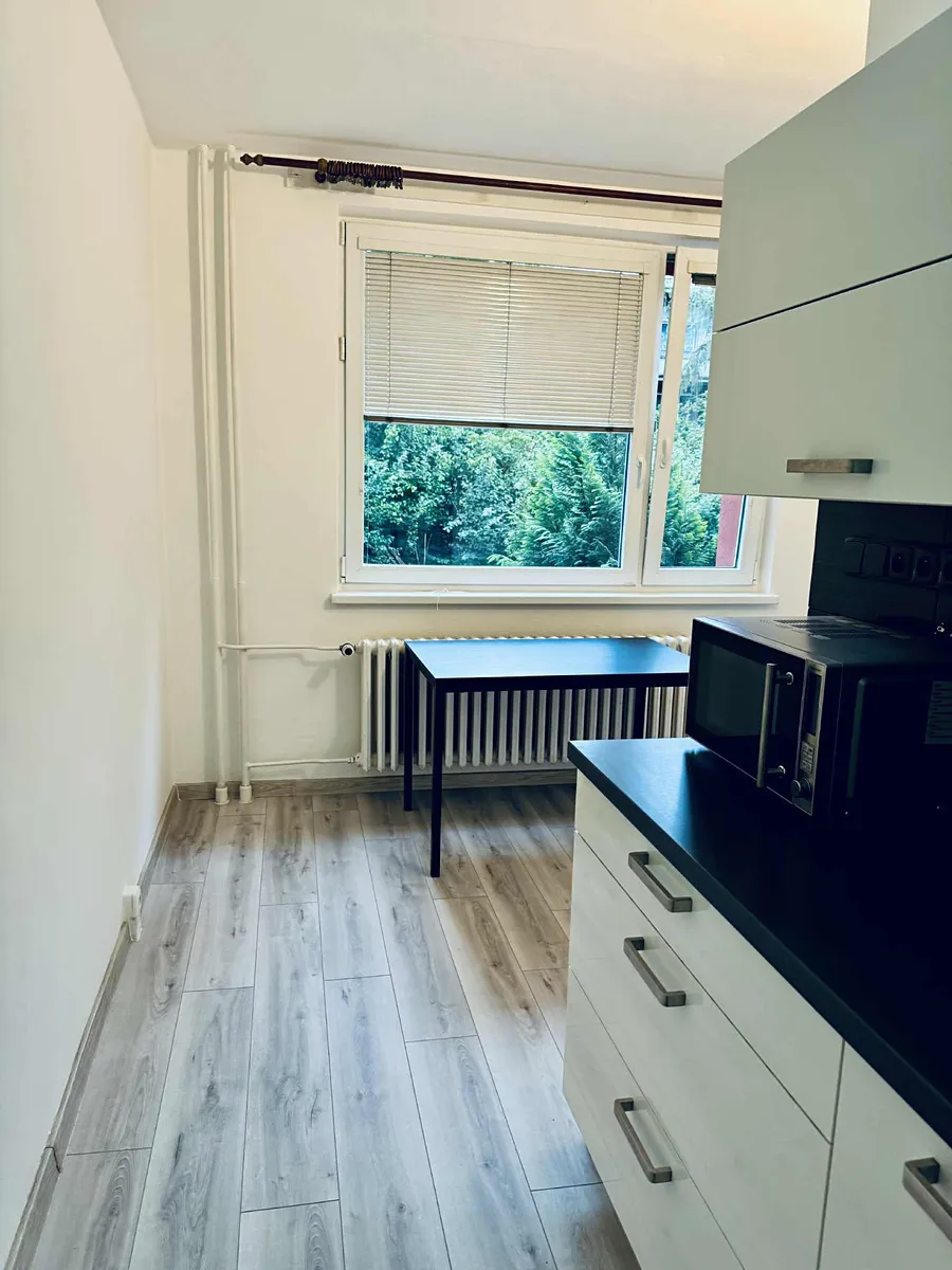 Nabízíme k pronájmu slunný moderní a nový byt 1+1 o výměře 39 m², v klidné žádané lokalitě ul. Jeronýmova. Jedná se o 1p./4p - vyvýšené patro. Byt je rekonstruovaný a částečně vybavený (lednička, sporák, pračka, skříň). WC je samostatné. Dům je revitalizovaný a zateplený. Možnost internetového připojení. Velmi dobrá občanská vybavenost v pěší dostupnosti. Ihned k nastěhování. Cena 11 800 kč/ měsí + energie ( elektřina cca 700 Kč) Provize RK jeden nájem.