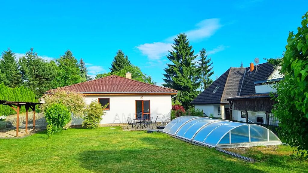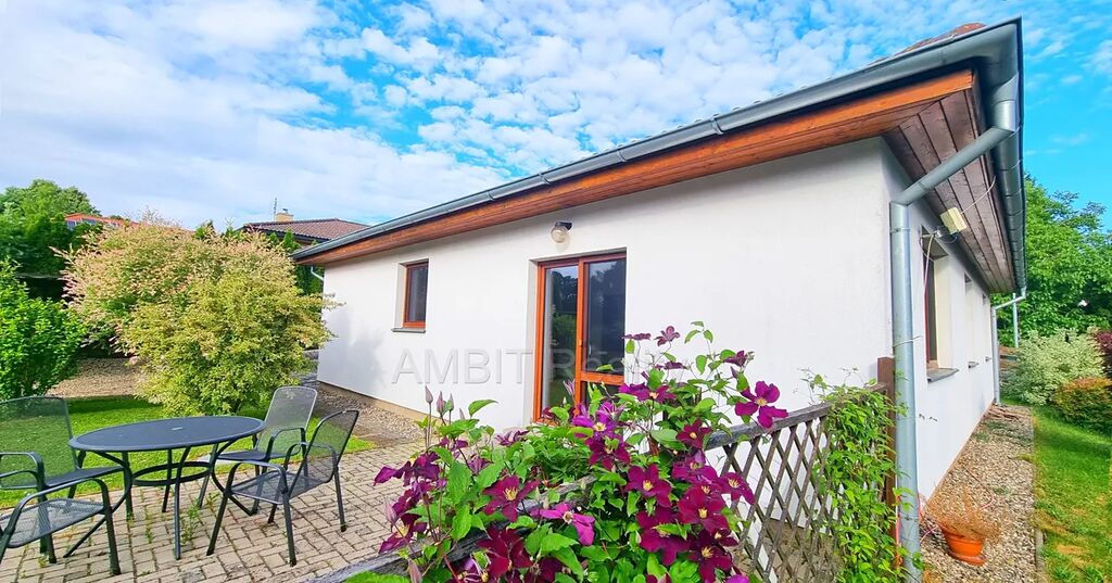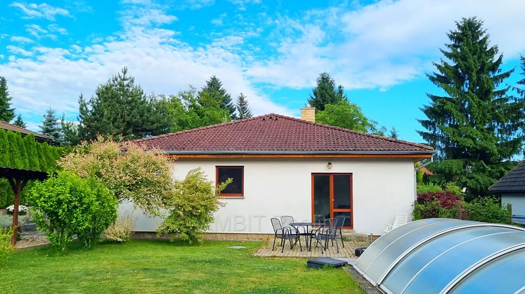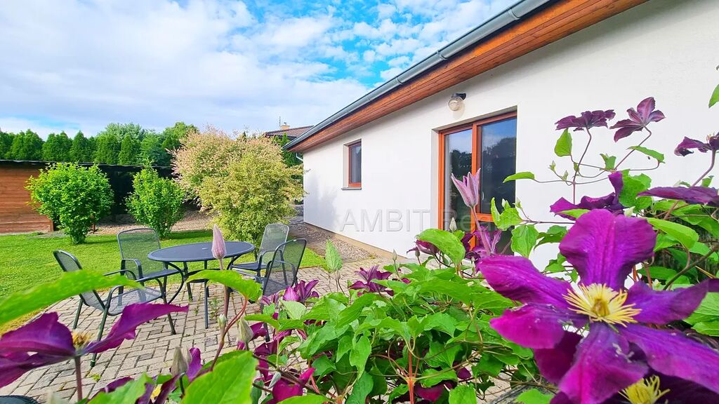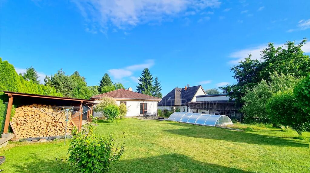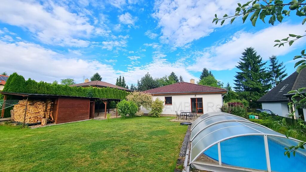 Na základě exkluzivního - výhradního zastoupení prodejce nabízíme k prodeji velice krásný, velmi prostorný jednopodlažní rodinný cihlový dům z roku 2004 o dispozicích 4+kk a vnitřní rozloze 143 m2, s pozemkem 958 m2, z toho zahradou 815 m2 s bazénem, altánem a zastřešeným parkovacím stáním, situovaný na kraji obce ve velmi poptávané lokalitě klidné obce Všestary, 25 min. od Prahy.