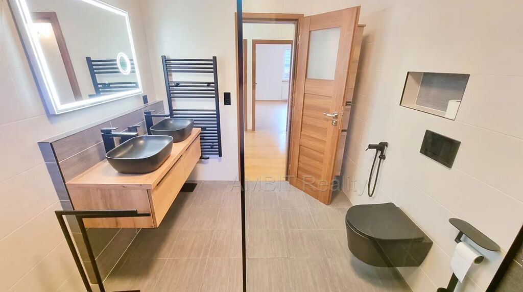 Výborná dopravní obslužnost: 5 minut pěšky od domu se nachází zastávka příměstského autobusu, 1 km od domu je vlaková zastávka ze které je to do Prahy 26 min na hlavní nádraží. Vlaky na Prahu jezdí každou čtvrthodinu. Vynikající je rovněž spojení autem – k D1 je to 4 km (7 min autem), celkem do Prahy 25 min.