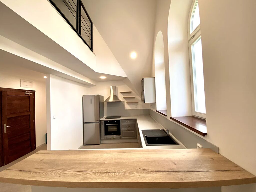 Exkluzivně Vám nabízím pronájem kompletně před třemi roky rekonstruovaného mezonetového atypického bytu 2+kk (82 m2) ve 3. patře prvorepublikové vily v ulici J. K. Tyla. Vila je umístěna poblíž Šanovského parku.