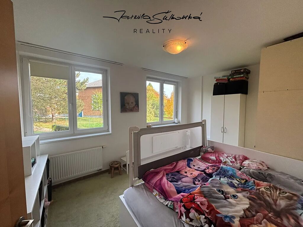 V oknech jsou žaluzie i látkové rolety, v pokojích i obýváku příjemné koberce, které bytu dodávají útulnou atmosféru.