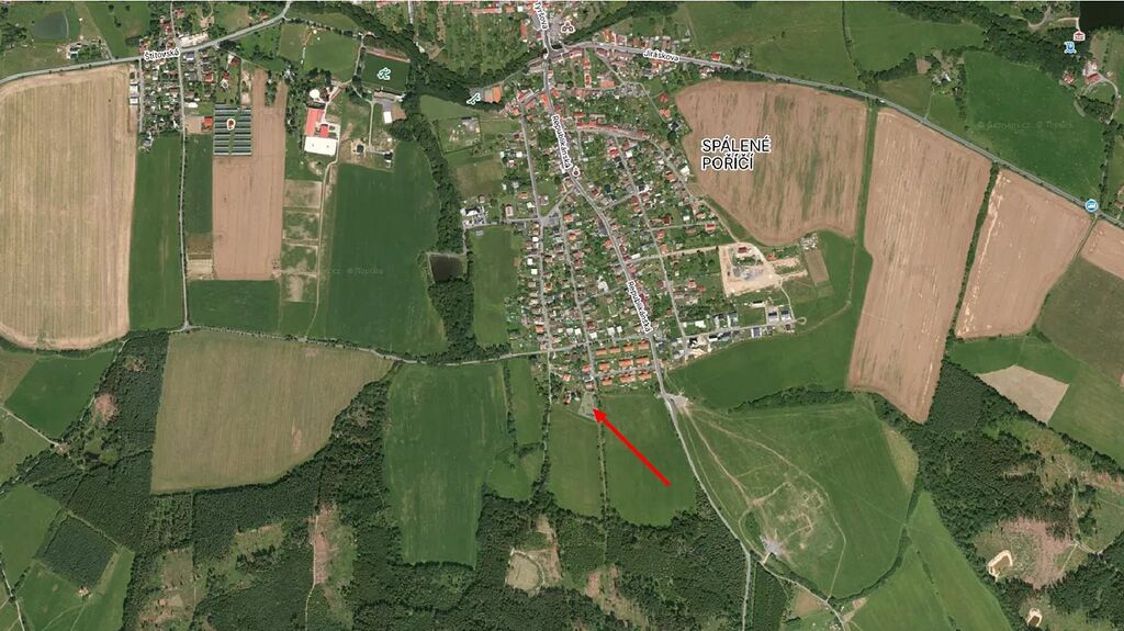 Pozemek s domem se nachází v klidné části města Spálené Poříčí jako předposlední pozemek v zástavbě přímo u lesa.