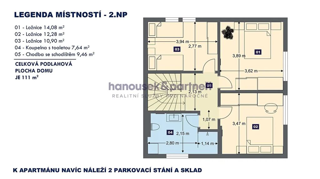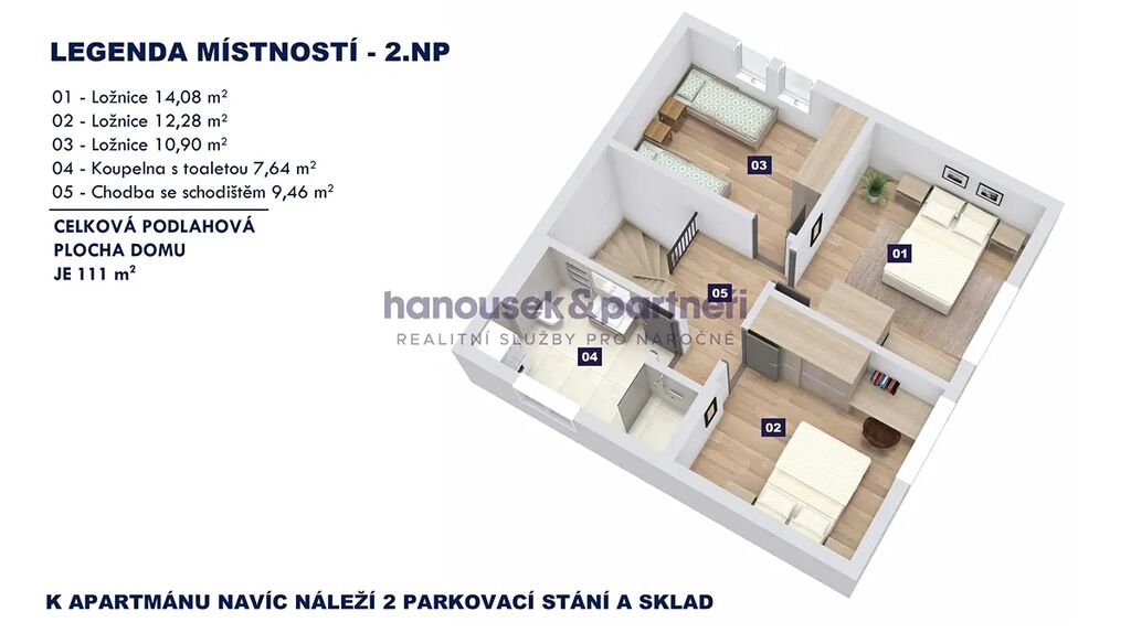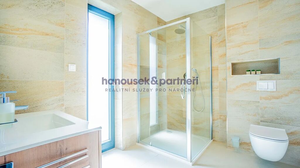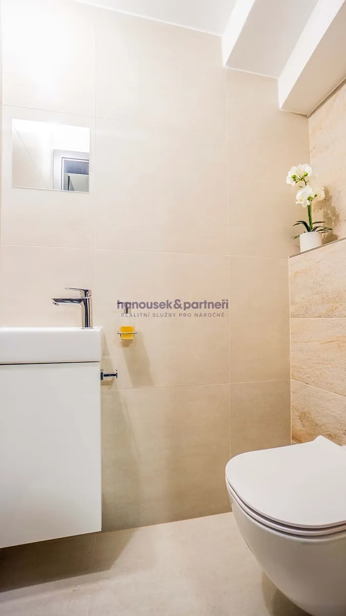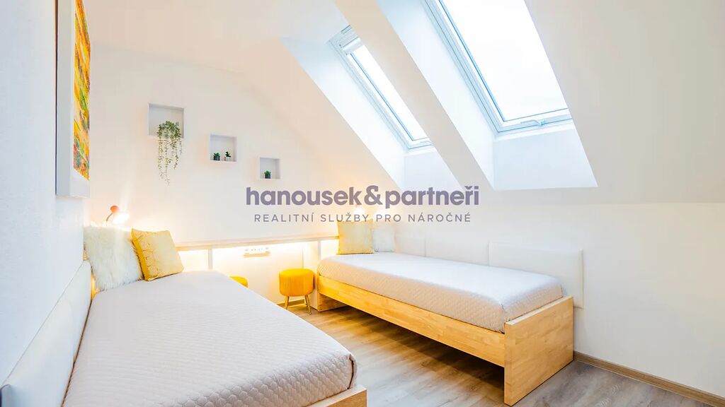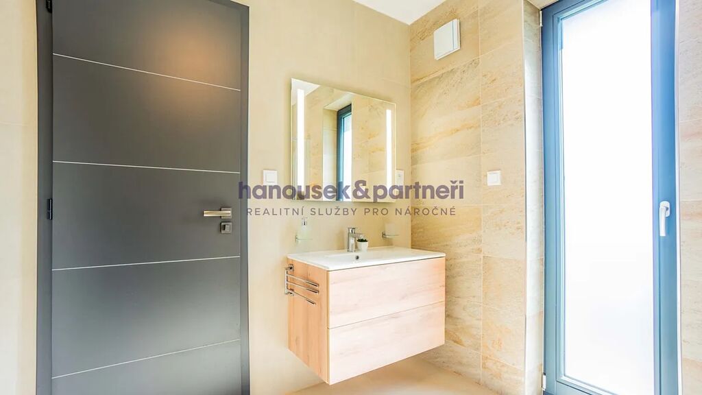 Apartmán je jedním ze dvou bytů v cihlové rodinné novostavbě. Má dispozici 4+kk a celkovou výměru 111 m2. V přízemí je obývací pokoj s kuchyní a  vstupem na terasu, koupelna a samostatné WC. V patře jsou tři ložnice a koupelna.