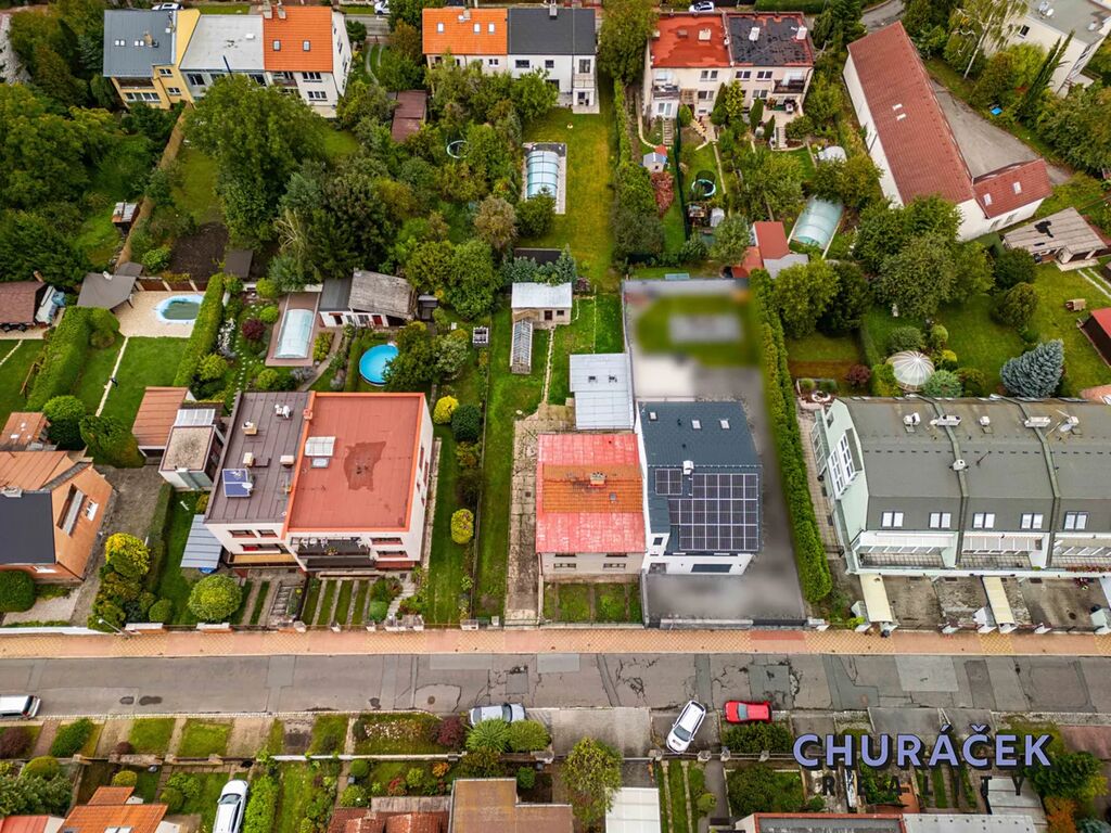 Celková výměra pozemku činí 455 m² a umožňuje zřízení terasy, bazénu či dětského hřiště. Klidná rezidenční ulice zajišťuje dostatek soukromí a příjemnou atmosféru bydlení.