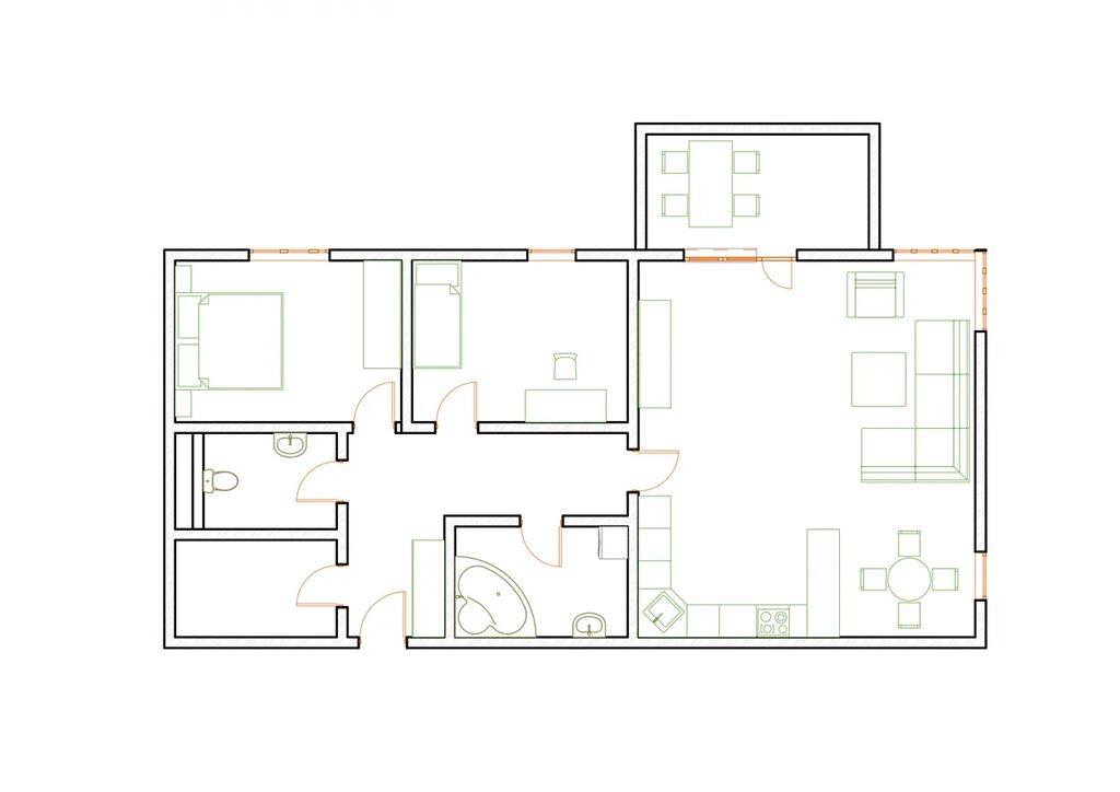 - Praktická dispozice 3+kk (82,4 m²)