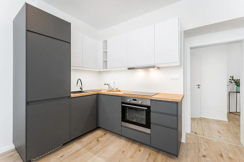 Byt právě prochází kompletní rekonstrukcí, která zahrnuje nové rozvody elektřiny, vody a odpadů, moderní podlahové krytiny, okna, nové obklady a sanitu.Součástí vybavení je kuchyňská linka na míru se spotřebiči prémiové značky Bosch.
