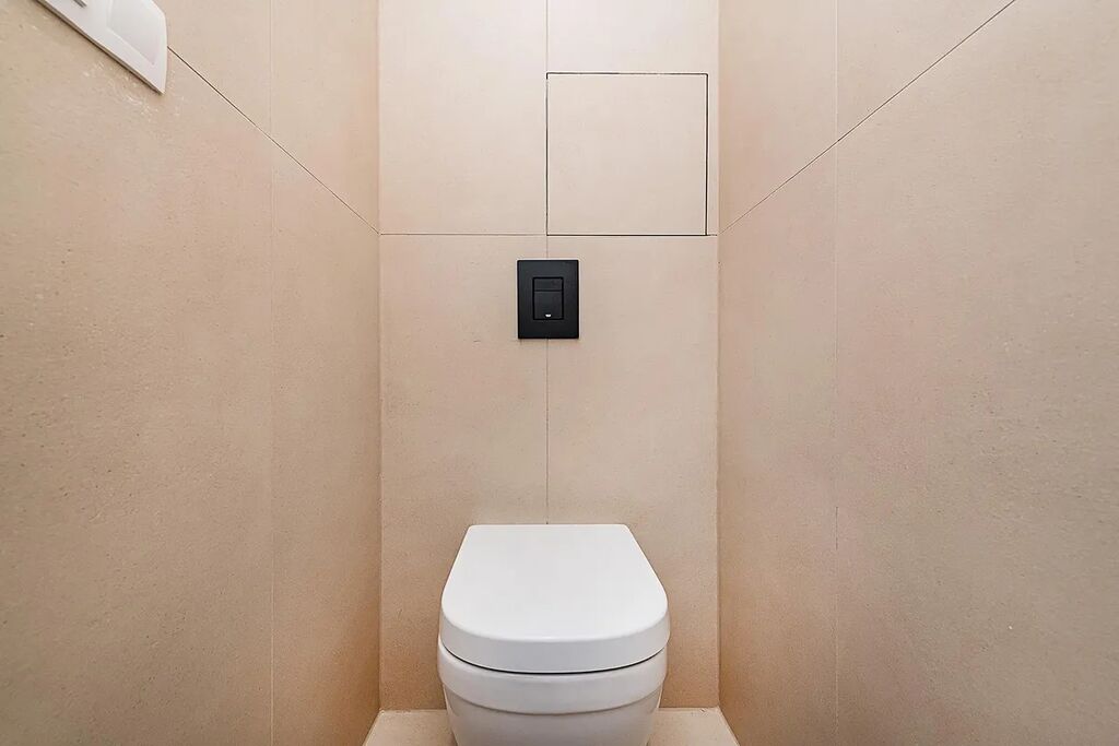 Vytápění bytu zajišťuje nové elektrické podlahové topení fungující na bázi uhlíkových folií s WiFi termostaty a možností ovládat teplotou na dálku přes mobilní telefon.