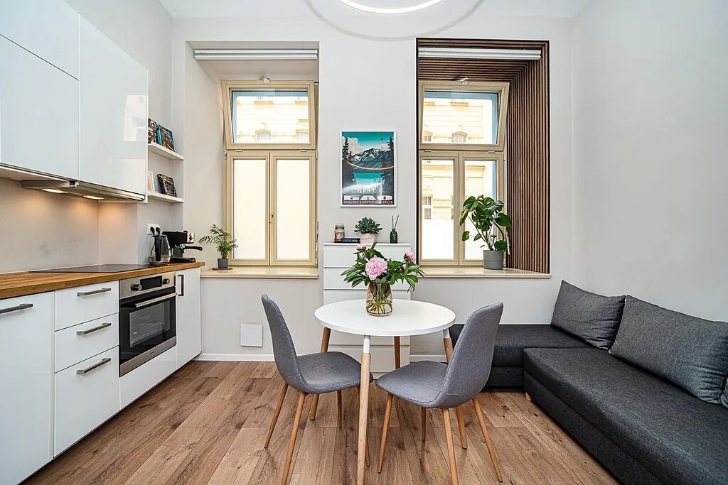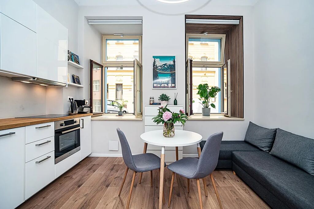 Přímý majitel nabízí k prodeji světlý, zrekonstruovaný byt 1+kk o celkové ploše 26 m², který se nachází ve zvýšeném 1. nadzemním podlaží cihlového domu v ulici Přibyslavská. Z ulice do něj není vidět, což zajišťuje dostatek soukromí, jelikož se pod bytem se nachází sklepní prostor. Byt je ideální pro jednotlivce, mladý pár nebo jako investiční příležitost k pronájmu.