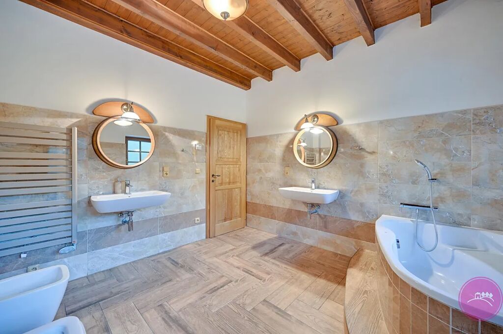 Ve výhradním zastoupení majitele nabízíme k prodeji zcela ojedinělou, nadstandartní nemovitost v obci Oskava, okr. Šumperk, uprostřed obcí Rýmařov, Šumperk a Uničov, do Olomouce 43 km, doba jízdy cca 45 minut autem. Nemovitost se nachází na samotě, na okraji obce, s cca 6000 m2 vlastního pozemku, obklopená lesy. Původní stavba pochází z roku 1923 - 1925, kdy kompletní rekonstrukce, přístavby a dostavba vrchního patra proběhla v letech 2013 - 2015. Při výběru nových materiálů byl kladen důraz především na kvalitu a dokonalost provedení. Inženýrské sítě jsou zavedeny všechny, plyn, elektřina, kanalizace a obecní voda, na pozemku také vlastní studna. Topení v celém domě podlahové, napojené na centrální topný systém - plynové, dále teplovodní vložka do obou krbů, ovládané termostaty a to v každé místnosti, centrální rozvod do topných těles. Dům je napojený na centrální zabezpečovací systém Jablotron, dále kamerový systém HIK CONENCT, internetové připojení řešeno vzduchem. Dům i střecha jsou zateplené. Střešní krytina umělý šindel - došky. Okna plastová s trojsklem. Podlahy dlažba, vrchní patro podlaha dubová, dub - interiérové dveře i obložky. Všechny kovové prvky originální kovářská práce. Nemovitost je částečně podsklepená, ve sklepě umístěn systém na vytápění a úprava na posezení. Nízké měsíční náklady - elektřina, plyn.