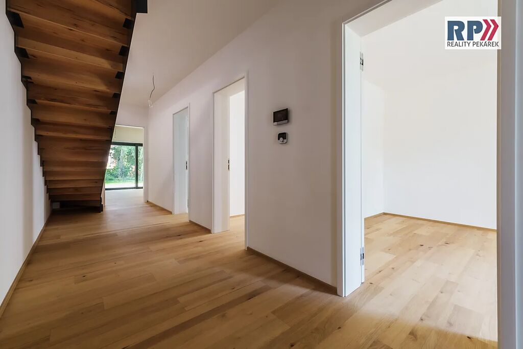 Inzerovaný vilabyt je označen písmenem B na situačním plánku v obrázkové části inzerce. Jsou zde rovněž uvedeny půdorysy obou podlaží + virtuální prohlídka matterport + přehled standardů použitých materiálů. Tepelné čerpadlo pro vytápění a ohřev TUV, dřevěné podlahy, špičková sanitární technika, kvalitní dlažby a obklady, dálkové ovládání vjezdové brány, pohodlné parkování, ale především vynikající lokalizace nemovitosti v blízkosti vlakového nádraží Praha-Klánovice činí tuto nabídku mimořádně atraktivní. Nemovitost byla zkolaudována v listopadu 2023.