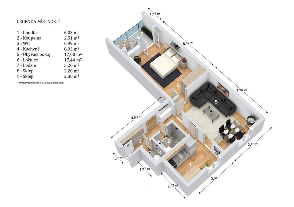 lodžie - 5,20 m²