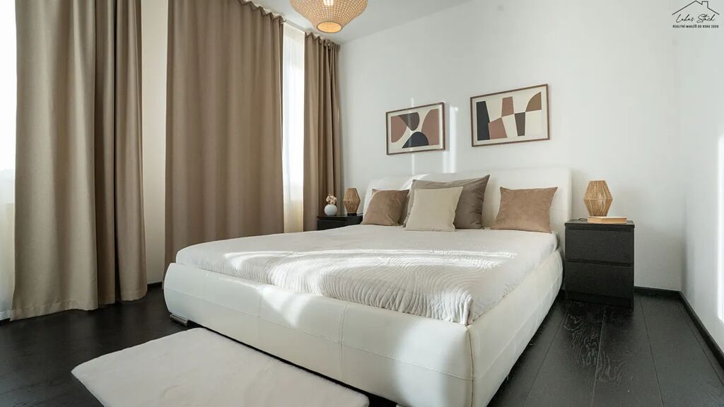 Ačkoliv byl byt dokončen už v roce 2010, díky pečlivé údržbě působí téměř jako nový. Pokud chcete, můžete ho převzít kompletně vybavený – od nábytku až po televizi na zdi.
