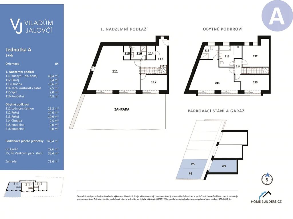 Nabízíme Vám jižně orientovanou bytovou jednotku A o dispozici 5+kk.