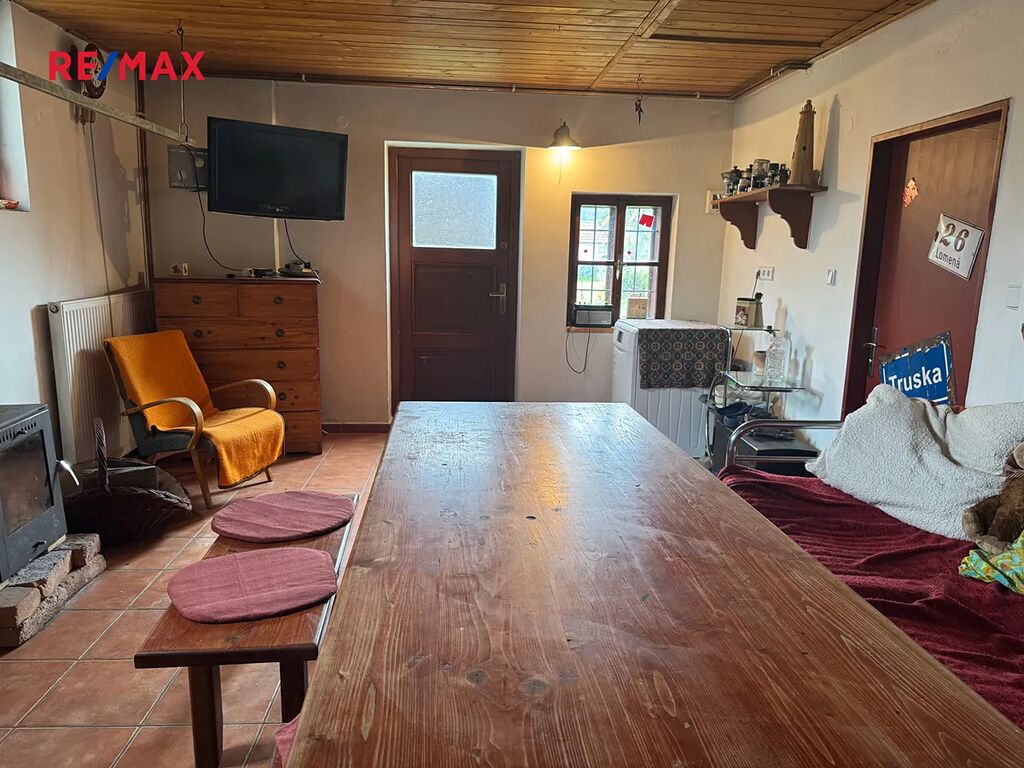 Dvoupodlažní budova dispozičně řešená jako 4+1 sestává v přízemí z kuchyně (16m2), zasedací místnosti (22m2), ložnice (16m2), samostatné WC (1,5m2), koupelny (2m2), spíže (6m2) a chodby (16m2). Schodištěm se dostaneme do prvního patra, kde je jeden menší pokoj (8m2) a velký pokoj (20m2). Vytápění je možné jak plynovým kondenzačním kotlem, tak kamny, která jsou ve všech místnostech. Nad novější cihlovou přístavbou je rozsáhlá půda. Chalupa má také menší sklípek (2,5m2) pro uchování potravin. Na malebné zahradě s vřesovištěm je postaveno posezení a kůlna. Chalupa je pravidelně udržovaná bez nutných investic ihned k užívání a celoročně dostupná po udržované obecní komunikaci.
