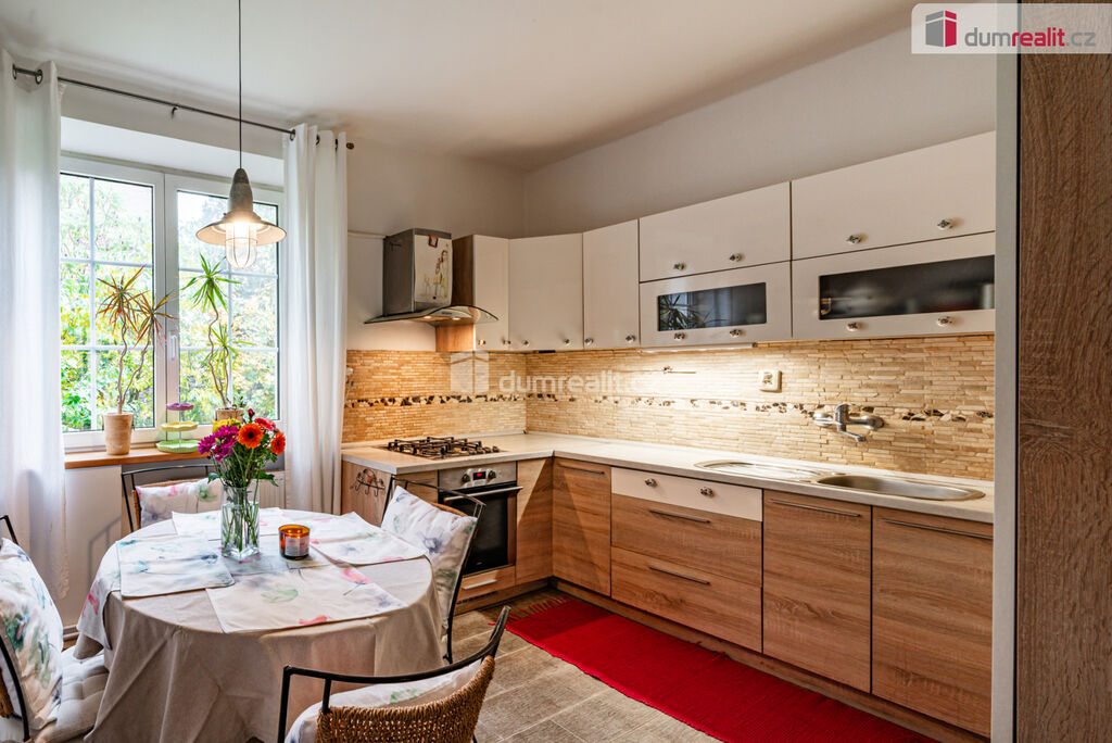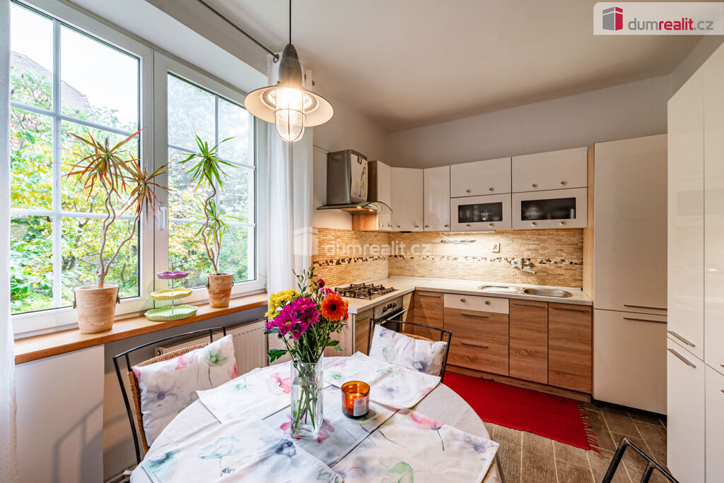 Dumrealit.cz Vám zprostředkuje koupi krásného bytu 3+1 ve zvýšeném přízemí cihlové vily s vlastní zahradou a 2 sklepy v Aši. Bytová jednotka o celkové rozloze 126 m² (z čehož 12 m² tvoří komora ve druhém patře a 27 m² tvoří dva sklepy) je dispozičně velmi dobře řešena, pokoje jsou neprůchozí, z prostorné chodby je přístupná jak kuchyně s jídelním koutem, tak obývací pokoj, dále ložnice i dětský pokoj. Bytová jednotka je po zdařilé generální rekonstrukci (2010) včetně elektroinstalace, vodoinstalace, podlah, nových štuků, omítek, koupelny, kuchyňské linky. Kromě jednoho pokoje jsou v celém bytě nová plastová okna. Kompletně jsou nová topná tělesa, nové rozvody topení, nové interiérové dveře. Byla instalována nová kuchyňská linka na míru se spotřebiči, v prostorné koupelně je vana, umyvadlo a toaleta. V rámci vybavení bytu zůstávají kvalitní vestavěné skříně. Samozřejmostí je, že zůstává kuchyňská linka včetně spotřebičů: myčka, vestavěná trouba, digestoř a plynový sporák. Vytápění a ohřev teplé vody zajišťuje kondenzační plynový kotel. Přízemí budovy bylo v minulosti odkopáno, opatřeno hydroizolační fólií, byly provedeny injektáže. K bytu náleží dva prostorné sklepy a možnost užívat další společné prostory. Budovu obklopuje pozemek o rozloze 1169 m², zastavěnou plochu tvoří 562 m², zadní pozemek má 607 m², na tomto pozemku má vlastník ideální 1/2 s tím, že v rámci sousedských vztahů je domluveno, že předmětný byt užívá pravou polovinu. Před domem je bezproblémové parkování. V Aši je veškerá občanská vybavenost, jsou zde škola, školka, městský úřad, supermarkety, obchody, restaurace, travel-free shop, MHD, nádraží atd.. Město je v blízkosti Německa, kde je dobré pracovní uplatnění a možnost výhodných nákupů. Cena zahrnuje provizi RK a veškerý právní servis. V případě zájmu Vám rádi zajistíme financování skrze naše prověřené hypoteční poradce Ev. číslo: 652865.
