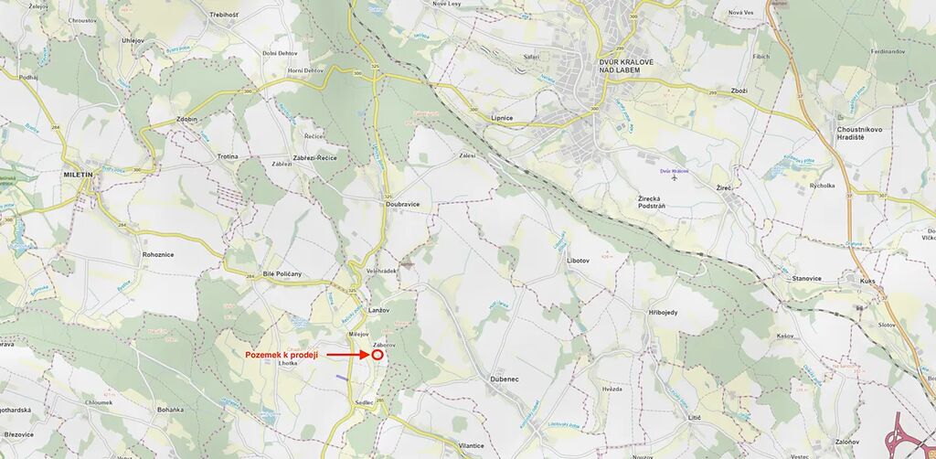 Dále je zde rozlehlá plocha vhodná pro vybudování zahrady nebo ovocného sadu o výměře cca 5402 m2. Celková prodávaná plocha činí celkem 6308 m2.