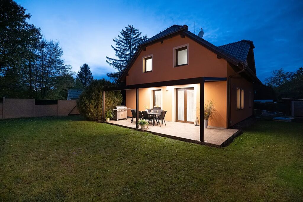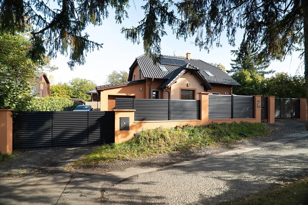 Vjezd na pozemek je zajištěn dvěma elektricky ovládanými posuvnými bránami, což zaručuje nejen pohodlí, ale i bezpečnost. Pro maximální soukromí je pozemek obklopen vysokým betonovým plotem, kombinovaným s hliníkovými lamelovými dílci. Dům je navržen s důrazem na nízké provozní náklady a vysokou energetickou efektivitu. Díky kvalitnímu zateplení, moderním technologiím a šetrnému využívání energií jsou náklady na provoz minimální.