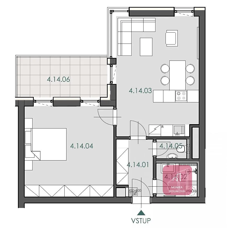 Nadstandardních 55 m2 interiéru, 9 m2 vlastní terasy s výhledem do zeleně, sklep 8 m2 a garážové stání v ceně.