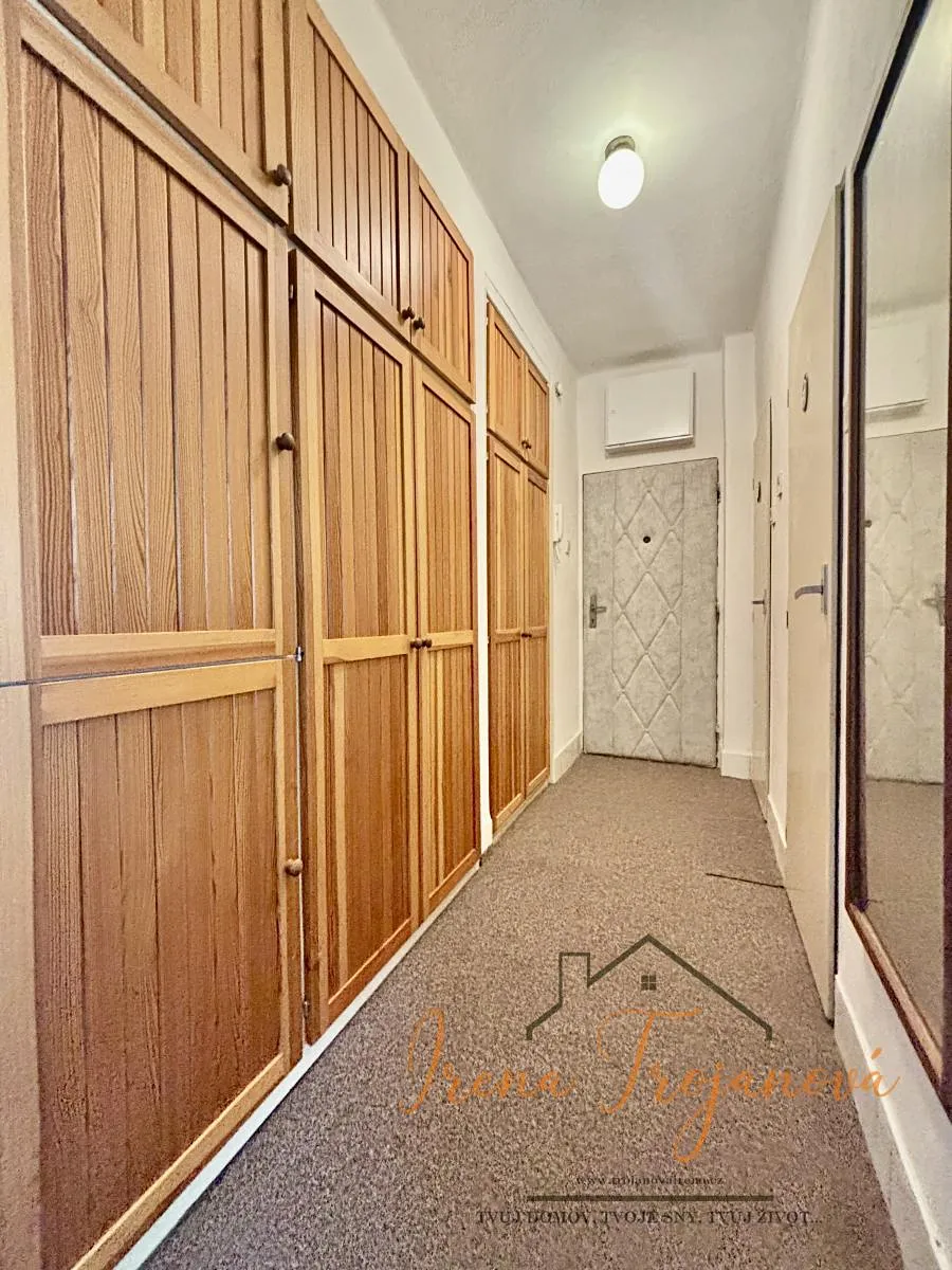 Byt prošel rekonstrukcí. Kuchyňská linka - sporák se sklokeramickou deskou, digestoř, obývací pokoj a ložnice. Koupelna se sprchovým koutem, WC samostatně, Na podlahách se nachází dlažba, koberce a PVC. K dispozici je lednice s mrazákem, pračka, vestavěné skříně na chodbě.