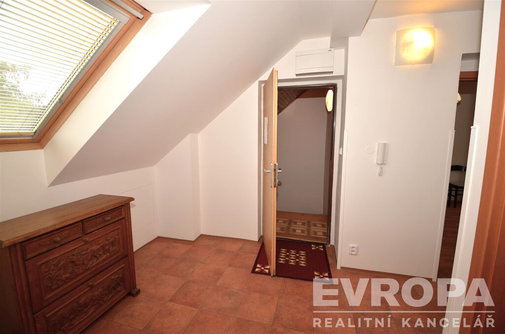 Nabízíme krásný byt, který se nachází ve 2 patře krajního, řadového rodinného domu s vlastním vstupem po schodišti (společná vstupní předsíň v přízemí domu a schodiště se vstupy do jednotlivých bytů). Byt nabízí komfortní a slunný prostor, dispozice bytu je 2+kk, skládá se ze vstupní předsíně, prostorný obývací pokoj s velkoformátovými okny s výhledem do zeleně a na slunnou jižní stranu, kompletně vybavená kuchyňská linka. Dále samostatná ložnice. Byt je částečně vybavený, kuchyňská linka sporák, lednice, pračka, částečně nábytek viz. foto (nábytek možné po dohodě odstranit), koupelna s vanou, wc samostatné. Volné parkování před domem, autobusové spojení na metro Kačerov, nebo Budějovickou. Dům se nachází přímo u vstupu do lesoparku. Majitel preferuje klidnější nájemce, bez domácích zvířat a vzhledem k dispozici bytu 2+kk, maximálně 2 osoby. Garantuje velmi korektní jednání a možný dlouhodobější nájem. Kompletní výše nájmu včetně fixních poplatků je 25000,Kč měsíčně. Byt je k nastěhování volný ihned. Prohlídky možné po dohodě.