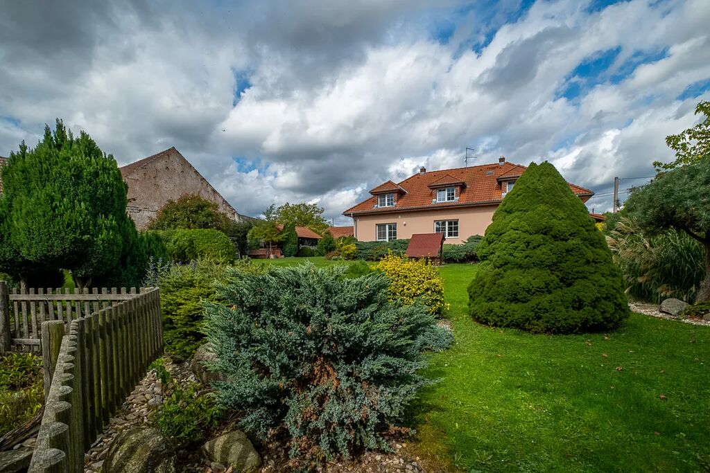 Dům vás přivítá velkou, upravenou zahradou o výměře 1 786 m², kde najdete nejen krásnou zeleň a vzrostlé dřeviny, ale také altán pro příjemné posezení, zahradní domek a sklípek.