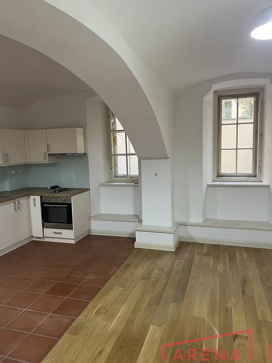 K pronájmu nabízíme nově zrekonstruovaný byt 1+kk v elegantním rohovém domě po celkové revitalizaci.