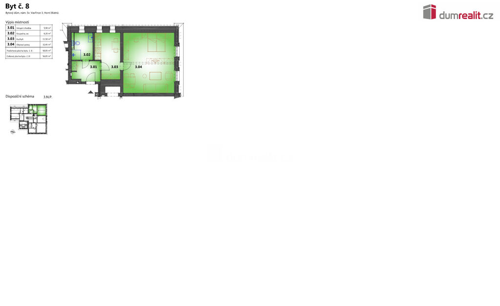 Dumrealit.cz Vám zprostředkuje prodej apartmánů na náměstí Sv. Vavřince v Horní Blatné, které se nachází v blízkosti několika lyžařských areálů jako je Plešivec, Potůčky nebo Klínovec. Apartmán číslo 8. se nachází ve druhém patře, je o velikosti 56 m² s výhledem na náměstí a kostel Sv.Vavřince. Dispozice bytu 2+KK. Všechny apartmány jsou vybaveny sanitární keramikou v koupelnách, sprchovým koutem Walk-in, podlahovou krytinou a to v kombinaci velkoformátové dlažby a plovoucí podlahy v dekoru dřeva, obložkami, interiérovými a vstupními dveřmi a kompletní přípravou na osazení kuchyňské linky. Ke každému apartmánu patří jedno soukromé parkovací místo hned u domu a jedna sklepní kóje, vše je již započítáno v uvedené ceně. Součástí jsou také nádherné společné prostory a to včetně sklepního prostoru s možností posezení. Vytápění apartmánů je elektrické s dálkovým ovládáním s připojením na Wi-Fi. V apartmánovém domě se nachází 12 jednotek od 1+KK až po 3+KK různých podlahových výměr. Několik apartmánů je již prodáno. Izolant obvodových stěn 16-18cm polystyrenové dílce a 28cm minerální vlna v podkrovní části domu. Nemovitost se nachází přímo na náměstí s výhledem na hory a kostel Sv. Vavřince. Koupě apartmánu je ideální také jako investice, kdy jsou Krušné hory celoročně navštěvovány turisty a Horní Blatná patří svým umístěním mezi nejvíce vyhledávané. V blízkosti apartmánu se nachází Blatenský vrch, Vlčí jámy a mnoho turistických a cyklo tras. Nemovitost s možností odpočtu DPH z uvedené kupní ceny. Fotky se zařízením a kuchyňskou linkou jsou z referenčního bytu číslo 10. Doporučuji nezávaznou prohlídku objektu s možností vybrat si právě ten VÁŠ apartmán. Ev. číslo: 652896.
