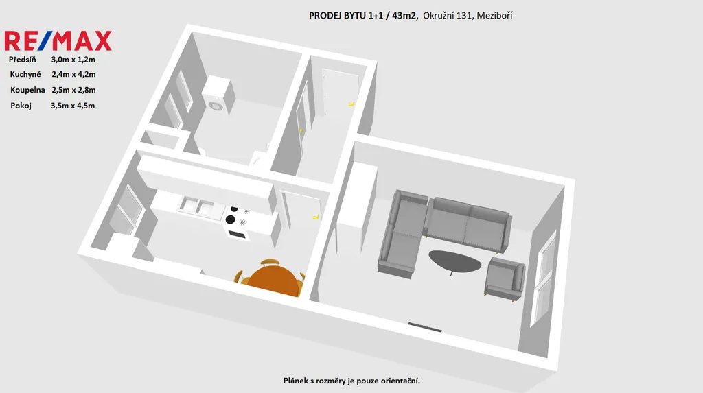 nabízíme k prodeji moderní a útulný byt o dispozici 1+1 a celkové ploše 43 m², který se nachází ve 2. podlaží zatepleného domu v oblíbené a klidné části města Meziboří.