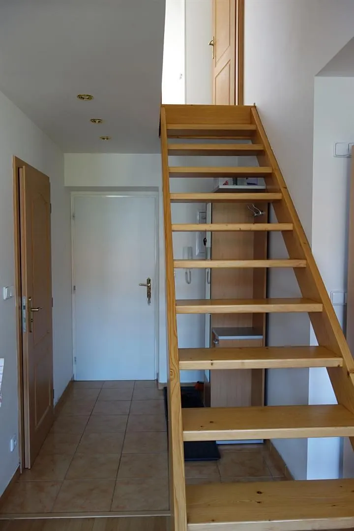 Byt se sestává z obývacího pokoje s kuchyňským koutem, prostornou koupelnou s vanou a WC, podkrovní ložnice. Byt vybaven kuchyňskou linkou, el. 4plotýnkou, el. troubou, digestoří, lednicí a pračkou. K dispozici dvoulůžko (bez matrace). Plovoucí podlaha, dlažba. Plynové etážové topení. Vysokorychlostní internet a kabel. TV Vodafone nebo O2.