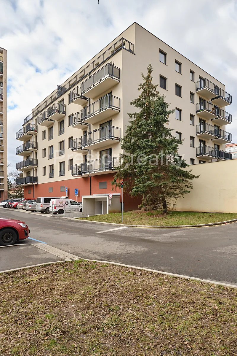 Dům je navržen jako bezbariérové bydlení s výtahem, v suterénu domu se nachází garáže, přičemž k bytu přísluší 2 parkovací místa (celkem 20 m2 za sebou – viz. foto), se snadným parkováním přímo naproti vjezdu do garáží (parkování v ceně nájmu). U domu jsou navíc parkovací místa pro hosty. Budova patří do úsporné energetické třídy „B“.