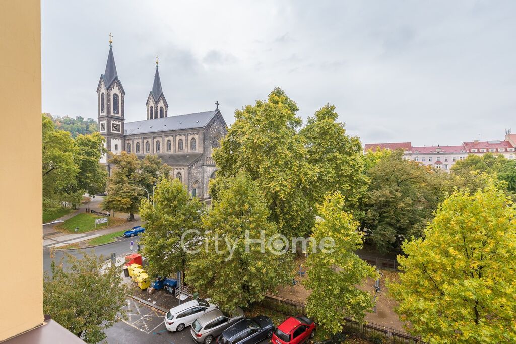 Byt je orientován na západ a nabízí nádherný výhled přímo do zeleně parku Karlínského náměstí.