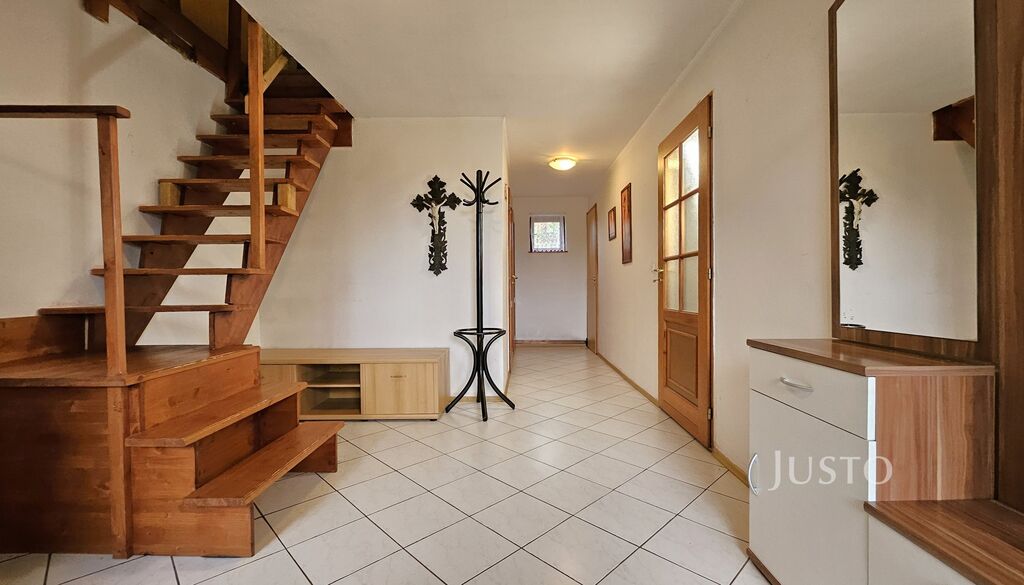 Na udržované zahradě je nadzemní bazén a několik okrasných dřevin. Celkově působí dům velmi útulně a klidně – ideální prostředí pro rodinnou rekreaci nebo pohodové trvalé bydlení. V posledních letech využíval majitel dům ke krátkodobým, rekreačním pronájmům. V případě zájmu je možné stejné využití.