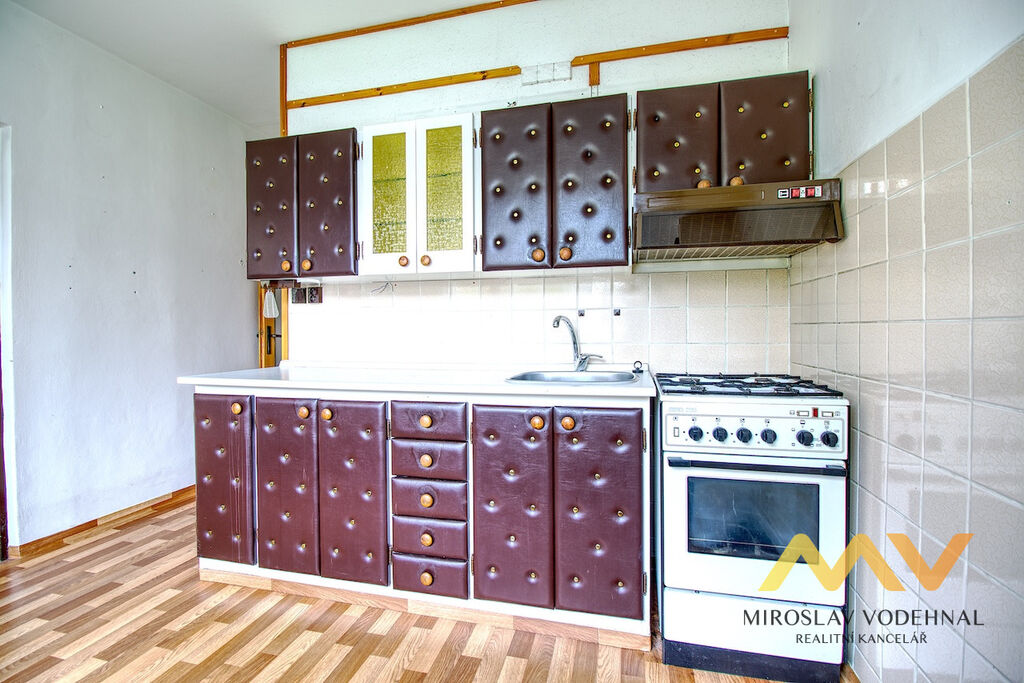 Byt je v udržovaném původním stavu s umakartovým jádrem a umožňuje úpravy dispozice dle vlastních představ. Kuchyň o velikosti 10,8 m² je vybavena linkou s plynovým sporákem a spíží. Obývací pokoj (18,9 m²) má vstup na lodžii o ploše 3,9 m² orientovanou na jihovýchod. Druhý pokoj (15,2 m²) je vhodný jako ložnice či dětský pokoj. Koupelna (2,5 m²) s vanou a keramickými obklady je oddělena od samostatného WC (1 m²). V bytě se nachází praktická komora s regály (4,5 m²) a k bytu náleží také prostorný sklep (2,9 m²) v suterénu domu, kde je k dispozici i společná kolárna s možností přímého vjezdu.
