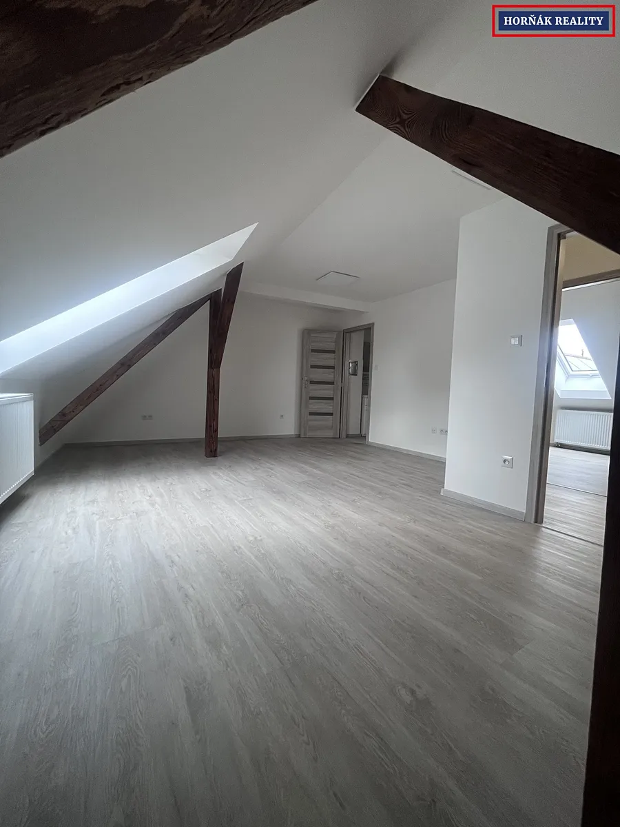 V patře jsou umístěny dva samostatné pokoje a druhá koupelna s WC.