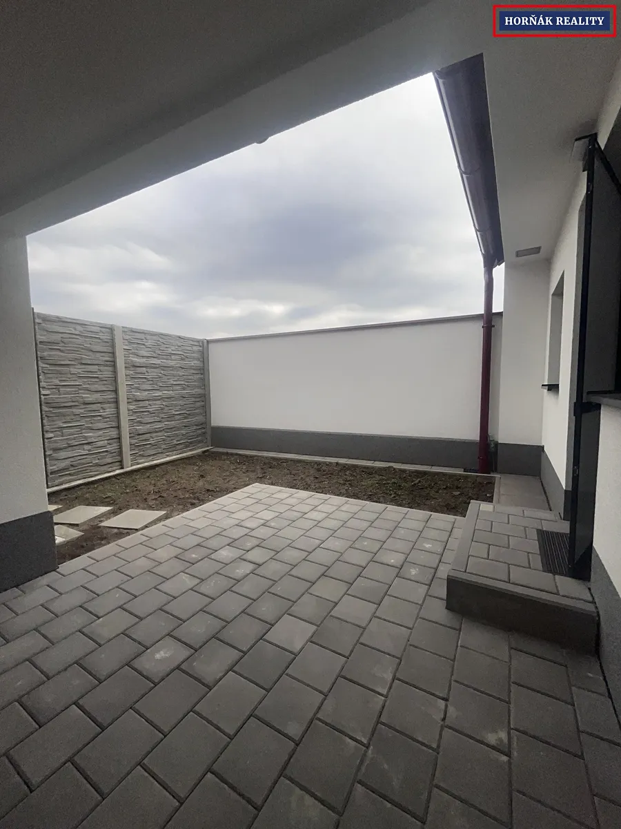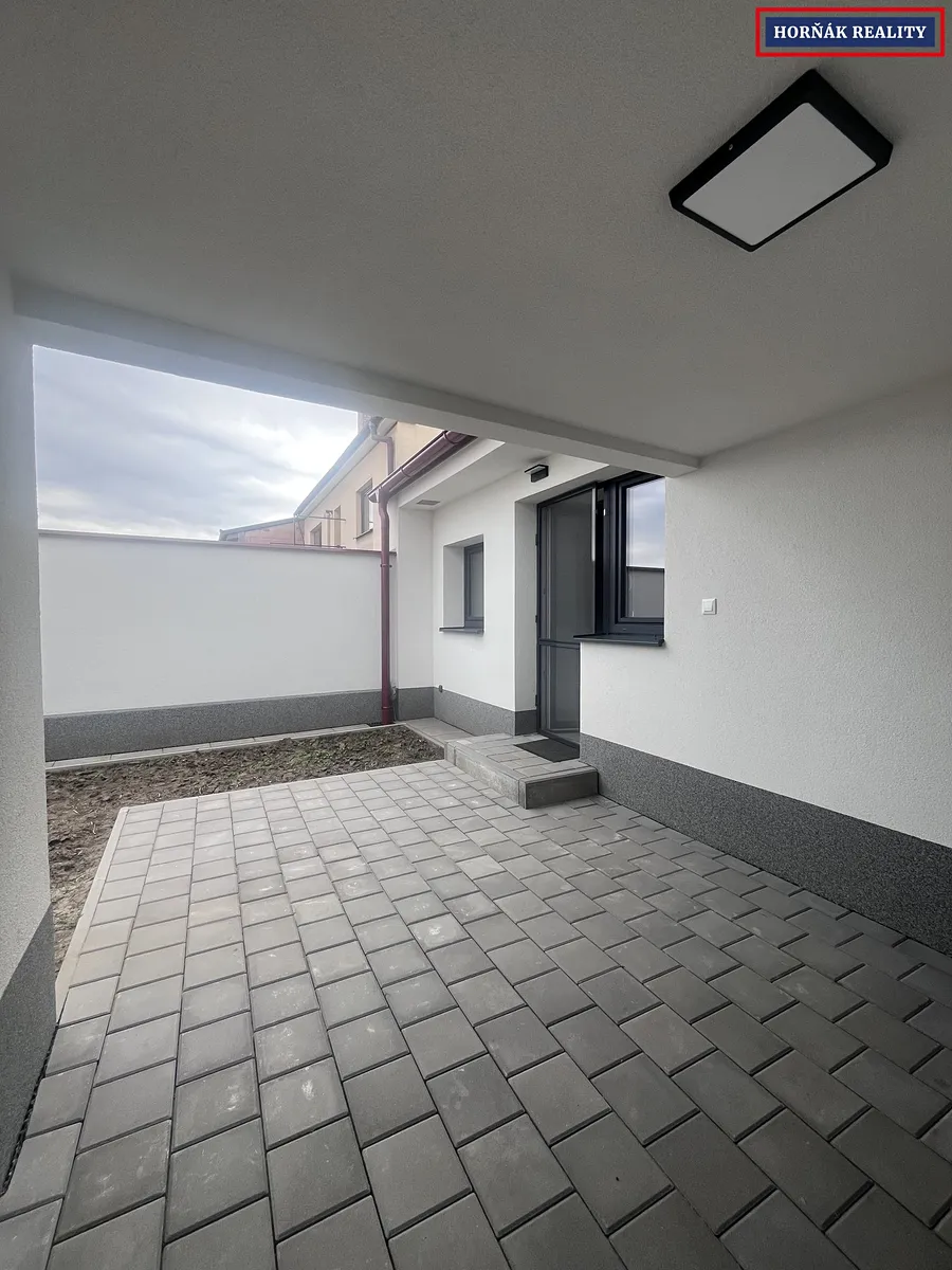 K domu náleží menší zahrádka, na kterou je vstup z kuchyně. Na zahradě se nachází praktická místnost, vhodná pro uskladnění kol, zahradního nábytku nebo nářadí. Parkování pro jeden automobil je možné přímo u domu.