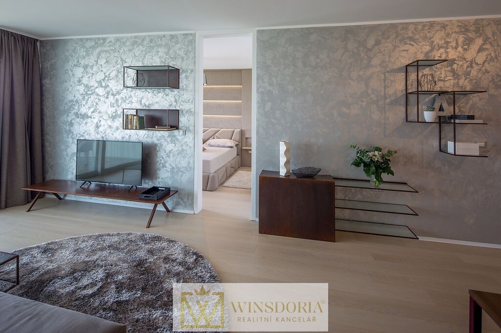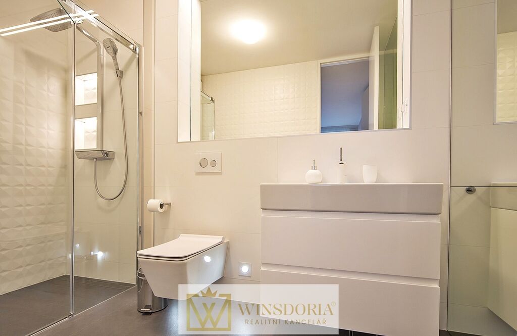 K apartmánu náleží dvě garážová stání s přímým vstupem k výtahu a také prostorný sklad o velikosti 15 m².
