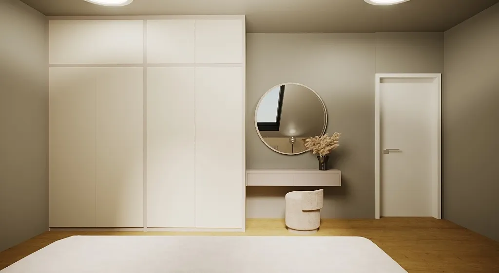 V obytných pokojích, orientovaných na jihozápad - obývacím pokoji s kuchyňským koutem a v místnosti o patro výš - jsou připravené vývody na instalaci klimatizace.