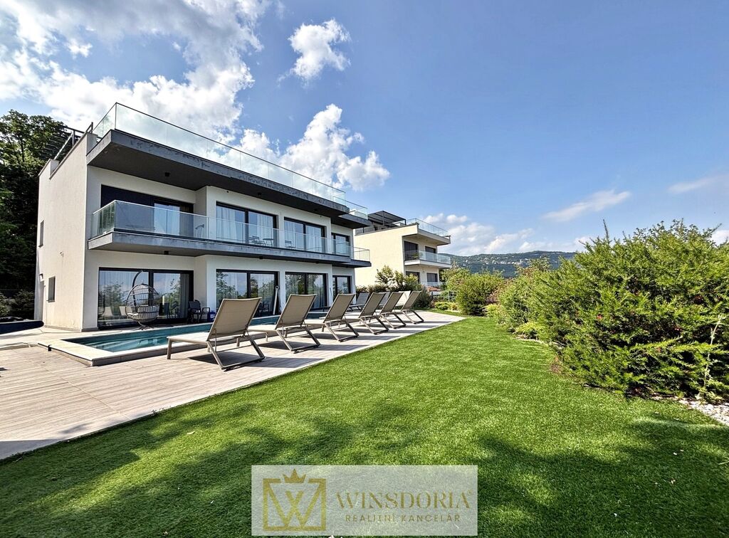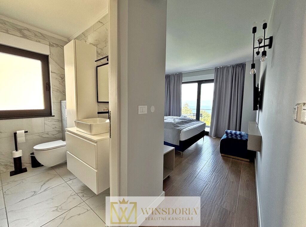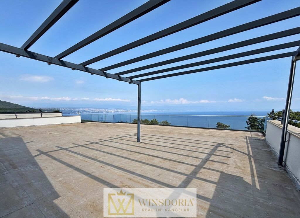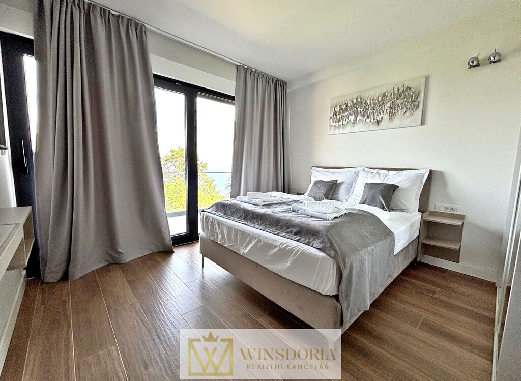 Do prvního patra vede vnitřní schodiště. Zde je umístěno pět ložnic, každá s vlastní koupelnou a přístupem na terasu, dále technická místnost. Zvláštností domu je prostorná střešní terasa s nádherným otevřeným výhledem na celý Kvarnerský záliv.