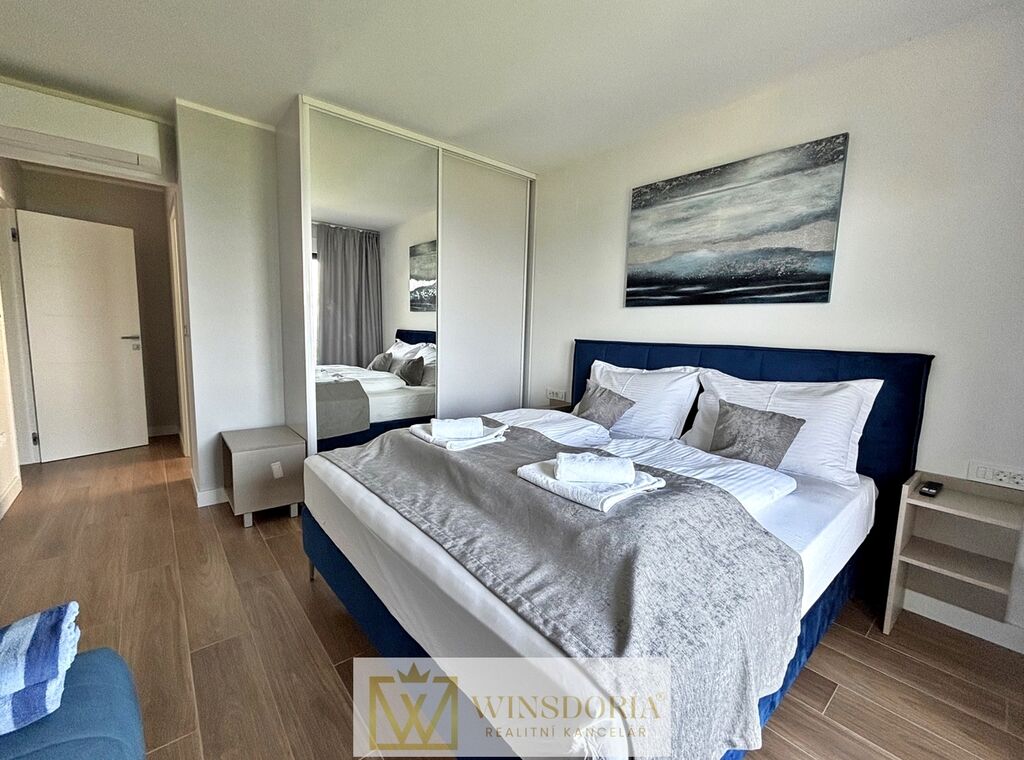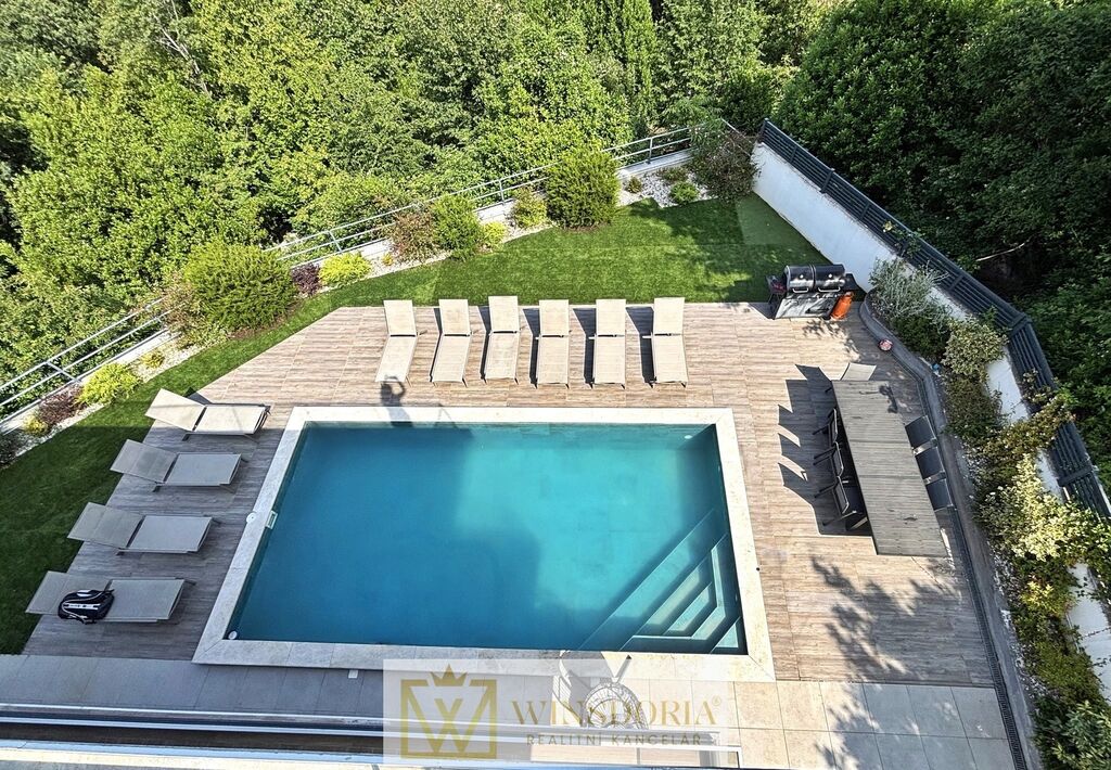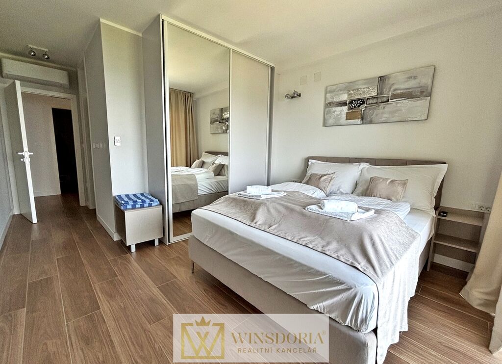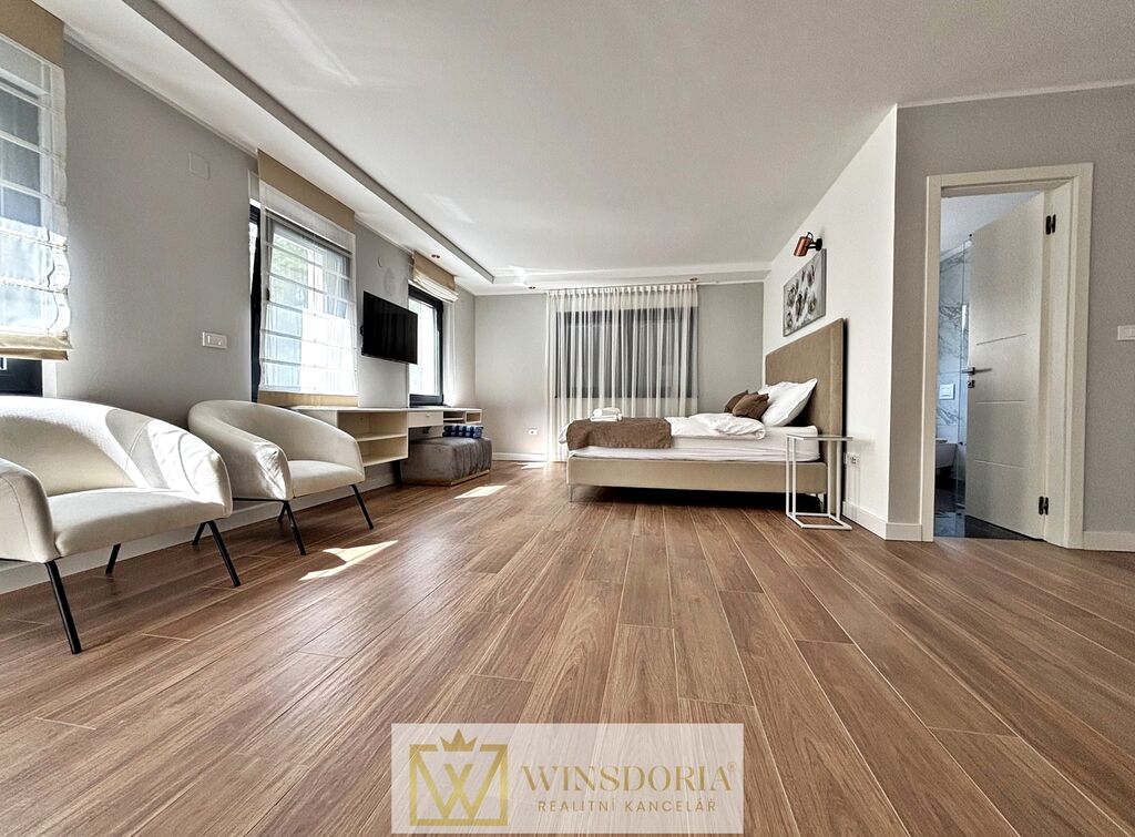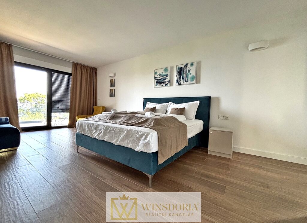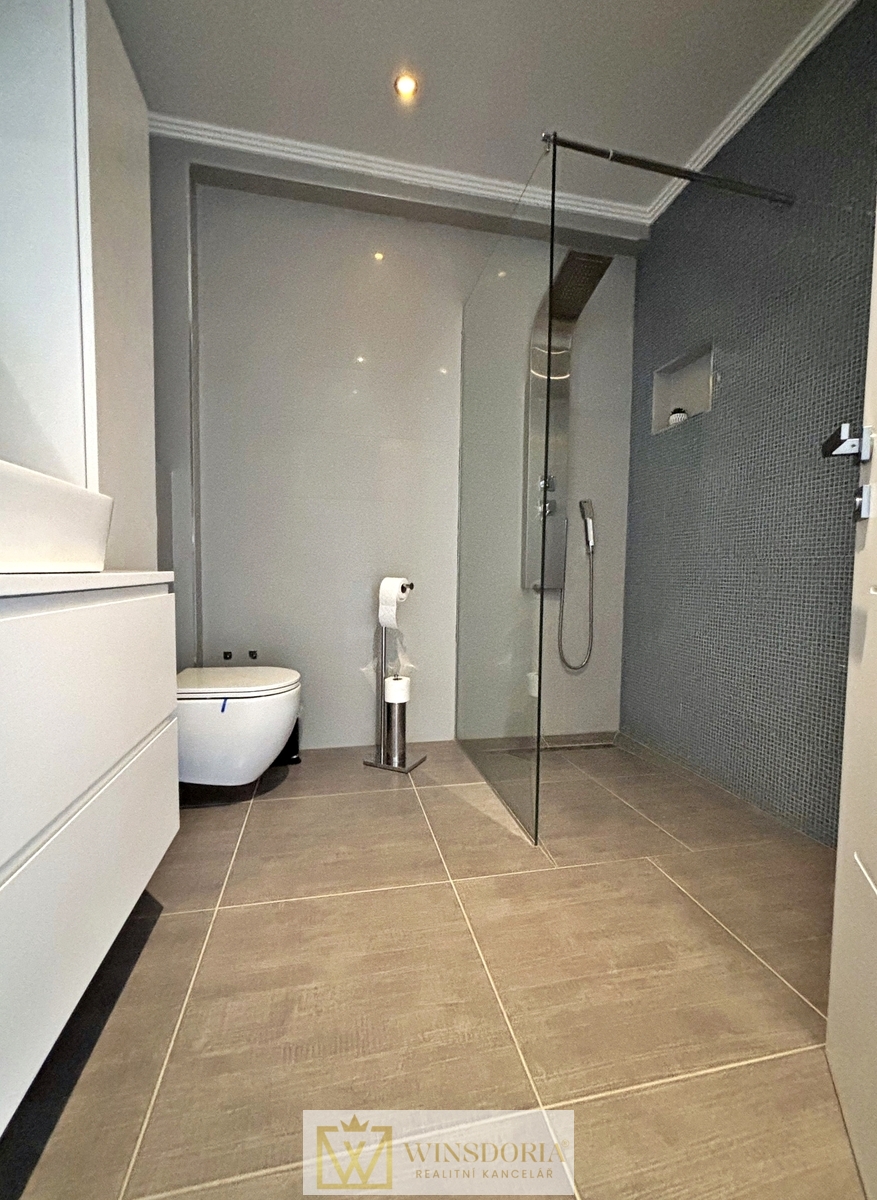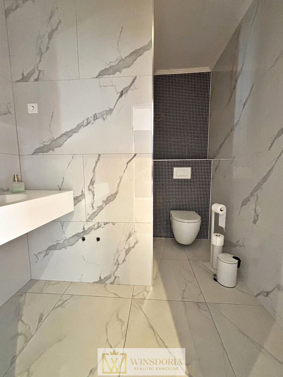 Dům je vybaven hliníkovým truhlářstvím s elektrickým ovládáním žaluzií, tepelnou fasádou, klimatizací ve všech pokojích a elektrickým podlahovým vytápěním v koupelnách. Prodává se kompletně zařízený.