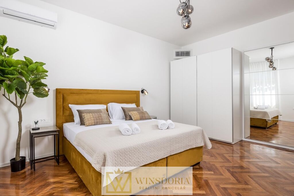 Byt je kompletně zařízen kvalitním nábytkem a okamžitě připraven k nastěhování, bez nutnosti dalších investic.