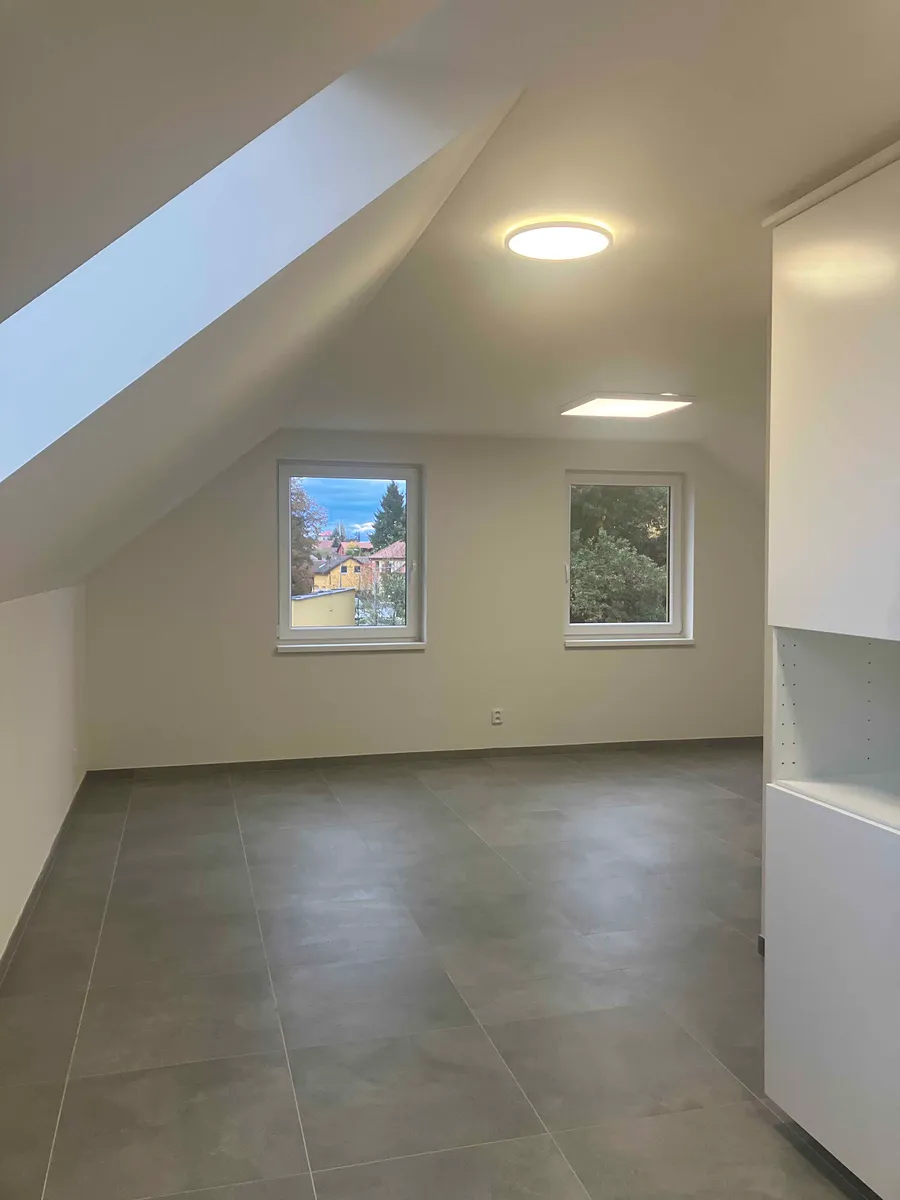 Podkrovní bytová jednotka disponuje novou prostornou kuchyňskou linkou zn. Ikea, v barvě bílá-mat, s dostatkem pracovního i úložného prostoru, vč. indukční varné desky, ele. trouby, digestoře a místa pro myčku nádobí. Prostorná koupelna je dobře větratelná a s denním světlem, naleznete zde vanu, umývadlo, WC, žebřík-topení, přípojku na pračku. Malá chodbička-zádveří. Všechny místnosti jsou osazeny světly Vytápění: plynový kotel+podlahové topení. Nová plastová okna, nové dveře vč. obložek. Podlaha: kombinace dlažby a plovoucí podlahy v ložnici. Součástí nabídky je také možnost parkování 1x vozidla na společném dvoře, což je v současné době velkou výhodou. Max 2 dospělé osoby, podmínkou nekuřáci a prosíme bez domácích mazlíčků. Prohlídky i možnost nastěhování listopad 2025.