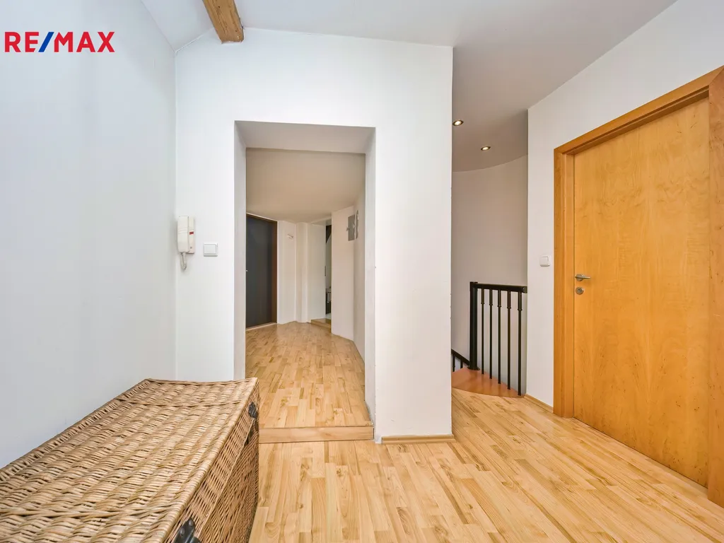 Nabízíme k prodeji mezonetový byt 5+1 s krytým parkovacím stáním, zahradou ve společném užívání (s vyhrazeným soukromým prostorem), terasou a sklepem v osobním vlastnictví o celkové evidované podlahové ploše 189 m². Byt se nachází ve 2. a 3. nadzemním podlaží (z celkem 3 NP) cihlového domu z roku 1919 bez výtahu.