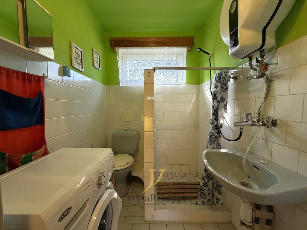 V přízemí najdete zádveří, chodbu, koupelnu s WC a sprchovým koutem, útulný obývací pokoj, spíž, menší kuchyň a velkou garáž. V podkroví jsou dvě velké ložnice a jeden prostorný pokoj, který v minulosti sloužil jako úložný prostor nebo dětský pokoj. Dům byl kolaudován v roce 1998 a je ve výborném technickém stavu – s plastovými okny, opraveným komínem a zateplením.