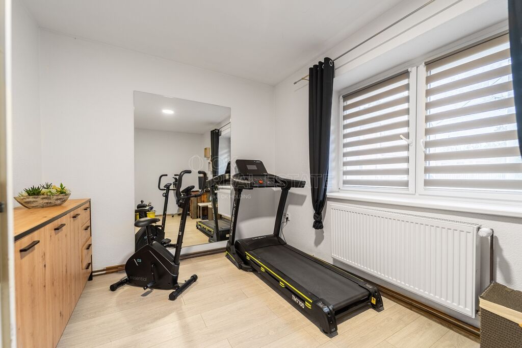 Další výhodou tohoto domu je částečné vybavení, které umožňuje novým majitelům dotvořit prostor podle vlastního vkusu. K dispozici je také sklep s plochou 8 m², ideální pro uskladnění různých věcí. Garáže pro dvě vozidla poskytují pohodlné parkování a ochranu před nepříznivým počasím.