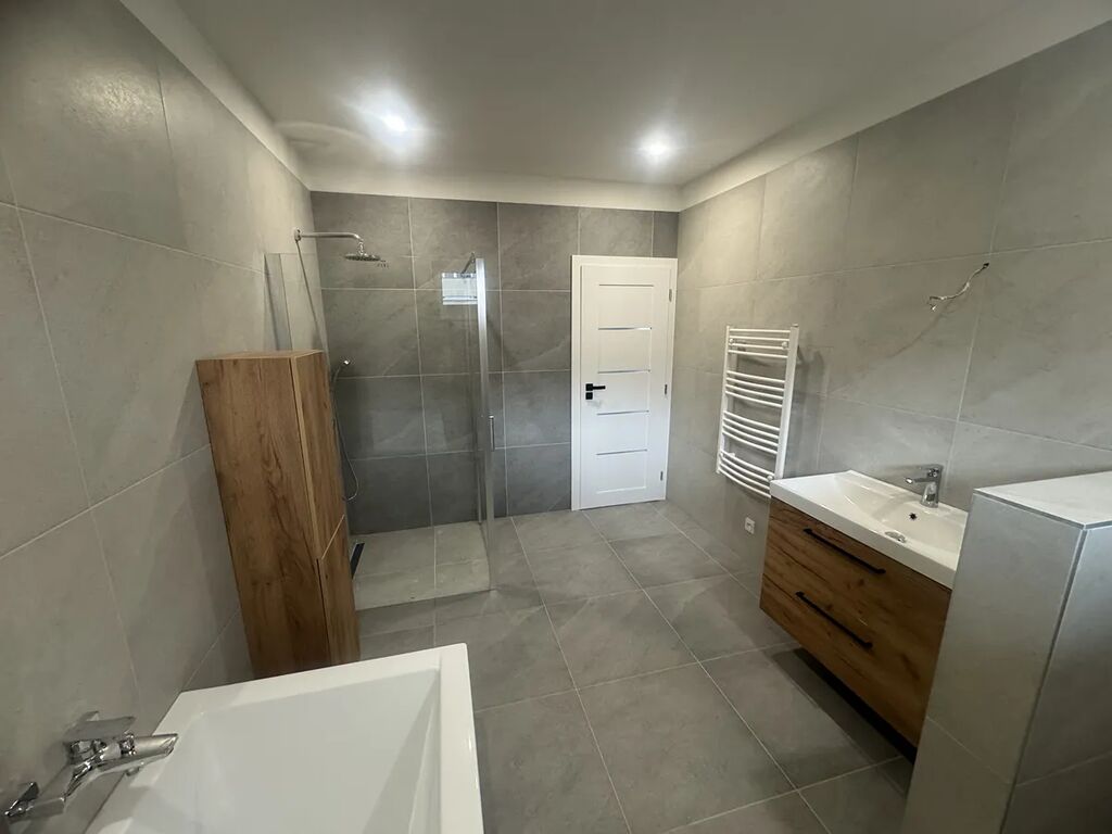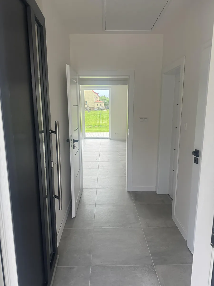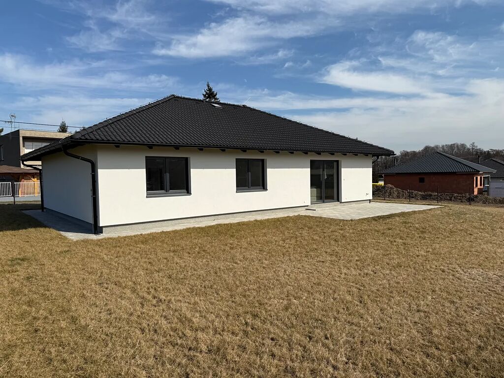 Dům má zastavěnou plochu 150m2, užitnou 120m2. Dispozičně je 4+kk, obývací pokoj je spojen s kuchyňským koutem se spíží, 3 samostatné pokoje, z toho jeden s šatnou. Koupelna je s vanou, sprchovým koutem, umyvadlem a wc, druhé samostatné wc je po vstupu do domu v chodbě. V technické místnosti je počítáno s pračkou i sušičkou.