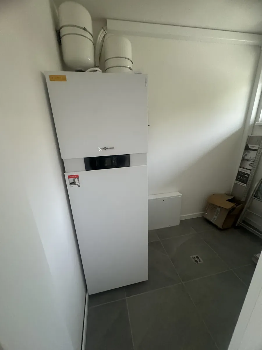 Vytápění podlahové - tepelné čerpadlo (Wiessmann), odpady obecní kanalizace. Voda obecní.
