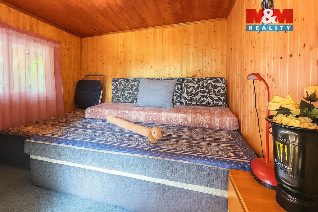 Podkroví nabízí pohodlné spaní, a pokud rádi kutíte, potěší vás kůlna plná nářadí (které zůstává v ceně). Chata se prodává s vybavením, takže můžete hned začít víkendový život snů.
