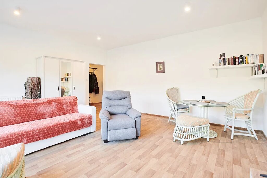 Nyní sestává z chodby, předsíně, prostorného obývacího pokoje s francouzskými okny a výhledem do zeleně, kuchyně, ložnice a koupelny.