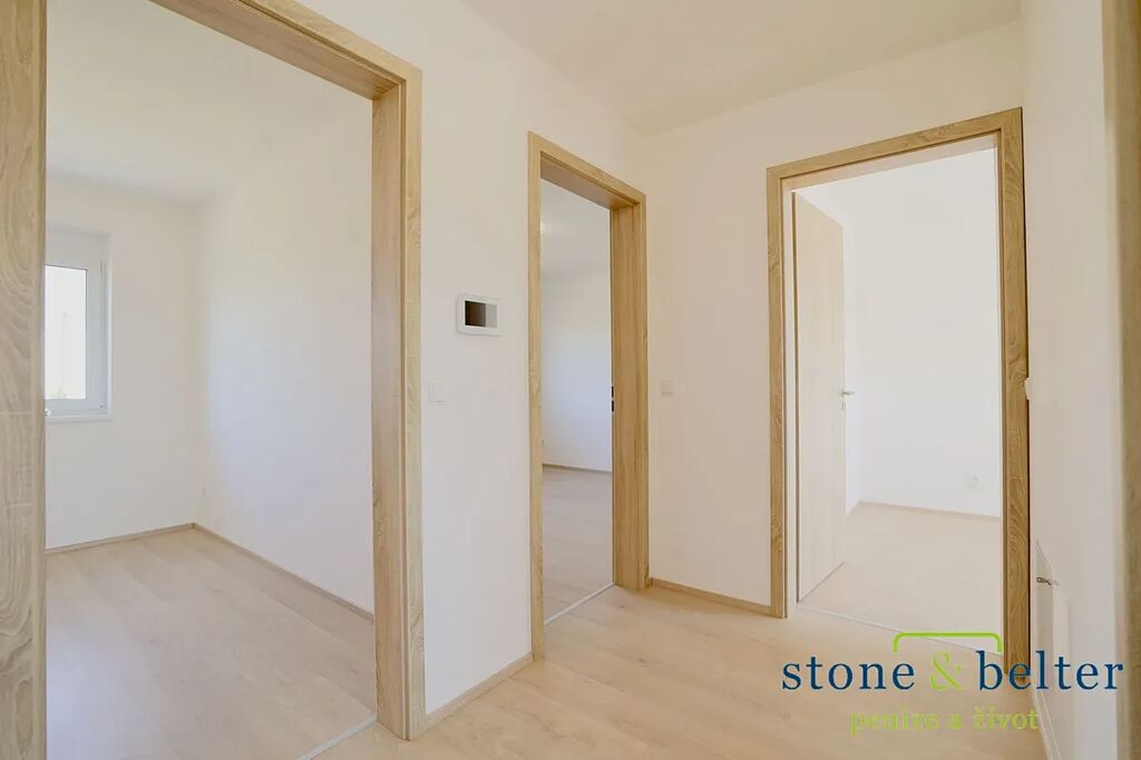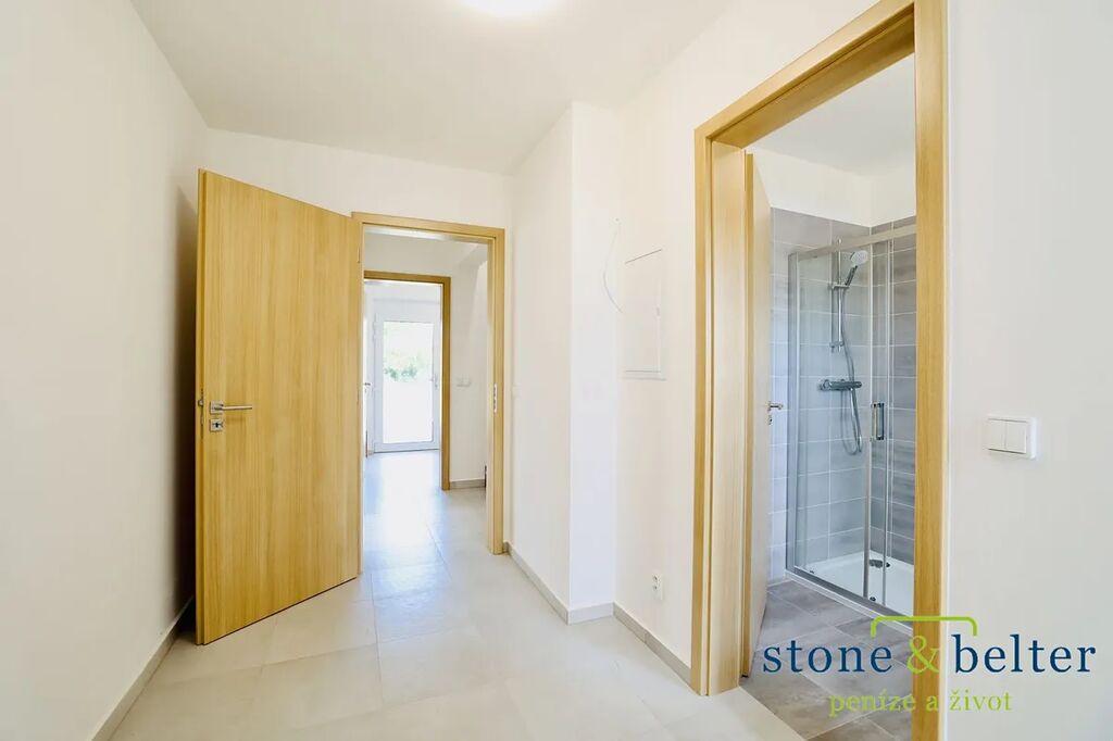 K dlouhodobému pronájmu nabízíme novostavbu rodinného domu 4+kk + pracovna v ul. U Nučického nádraží v Rudné u Prahy o velikosti 110 m² se zahradou 344 m² (pozemek celkem 516 m²). Jde o krajní stavbu řadového trojdomu. V přízemí naleznete prostorný obývací pokoj s výstupem na terasu a zahradu, kuchyňský kout, pracovnu a koupelnu se sprchou a WC. Ve 2. NP jsou 3 pokoje a koupelna s vanou a WC.